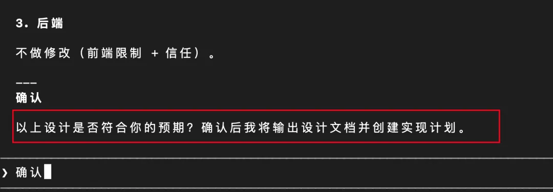 等待片刻后,cc输出了spec规格文档,我们在明确审核无误之后,点击同意让其完成剩余的开发工作: