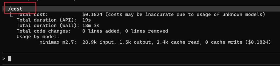 与之对应,如果对于成本监控有需求的读者可以通过**/cost**查看当前会话的消耗账单,如下图,各个字段分别对应: