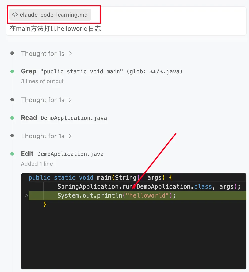 例如笔者本轮对话中,采用main方法打印日志模拟错误情况: