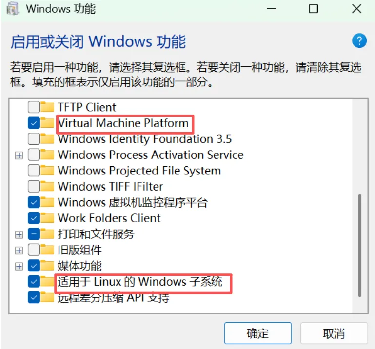 虚拟机平台(Virtual Machine Platform) 适用于Linux的Windows子系统