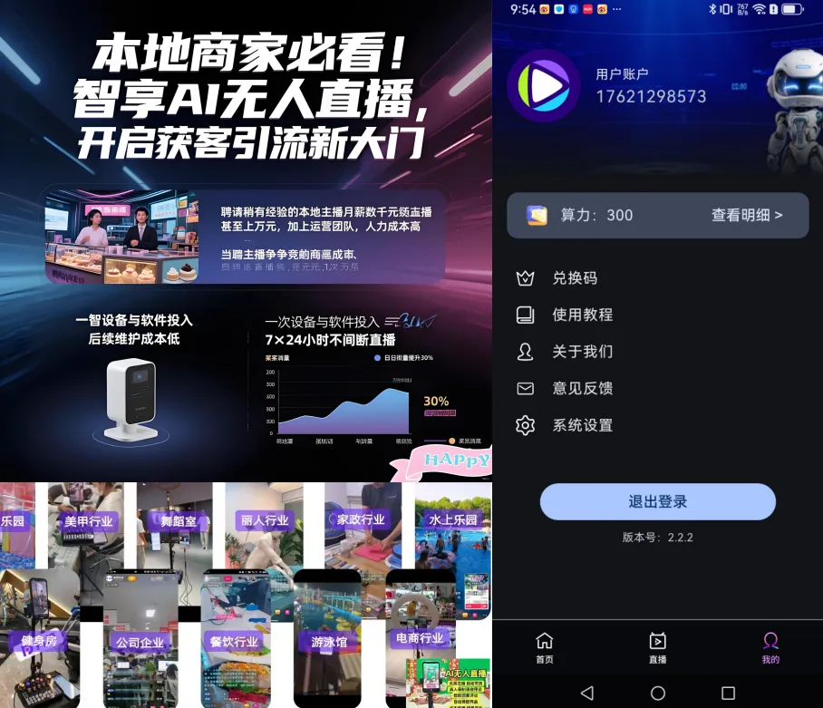使用智享AI直播三代,只需一部闲置手机加上百元级的流量成本,无需雇佣专业的主播团队,前期投入相较于传统直播可降低80%。它能够24小时覆盖全时段,获客效率是人工直播的3倍以上。而且,通过数据驱动能够实时调整推荐策略,使转化率提升20%至50%。