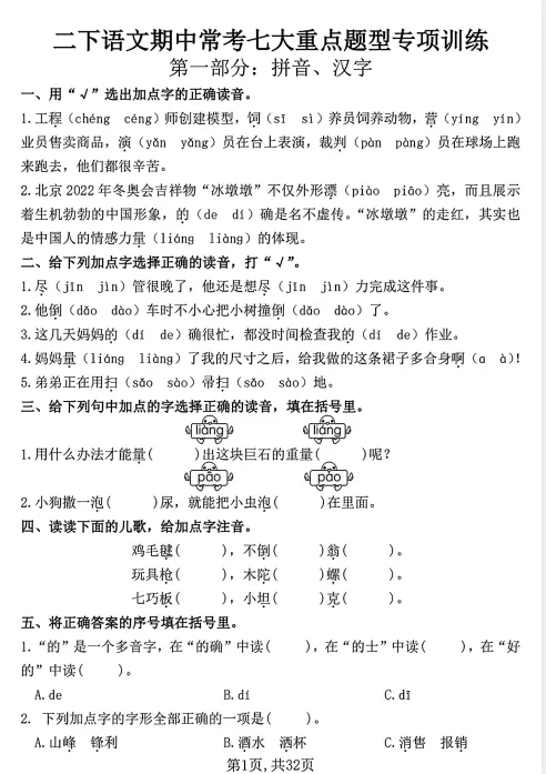 26春 RJ语文二年级《期中复习专项》PDF免费下载