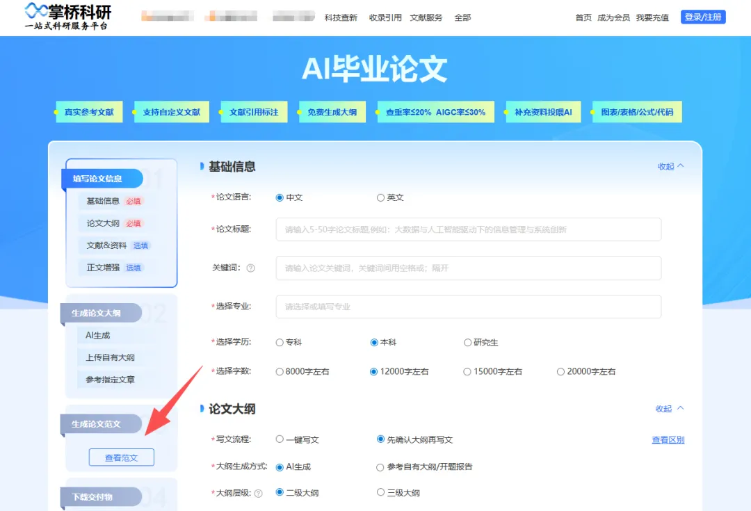 1)如果大家比较着急也可以一键写全文,最快十分钟左右就能拿到一篇范文参考了~