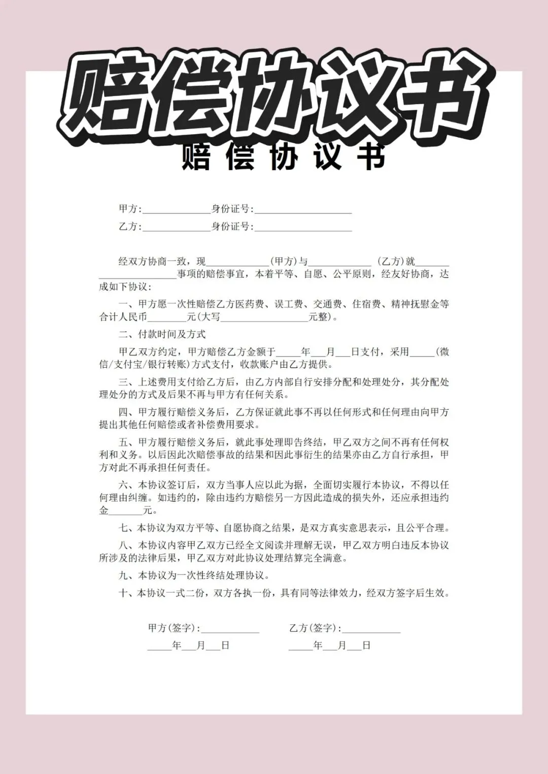 本文内容分享赔偿协议书模版