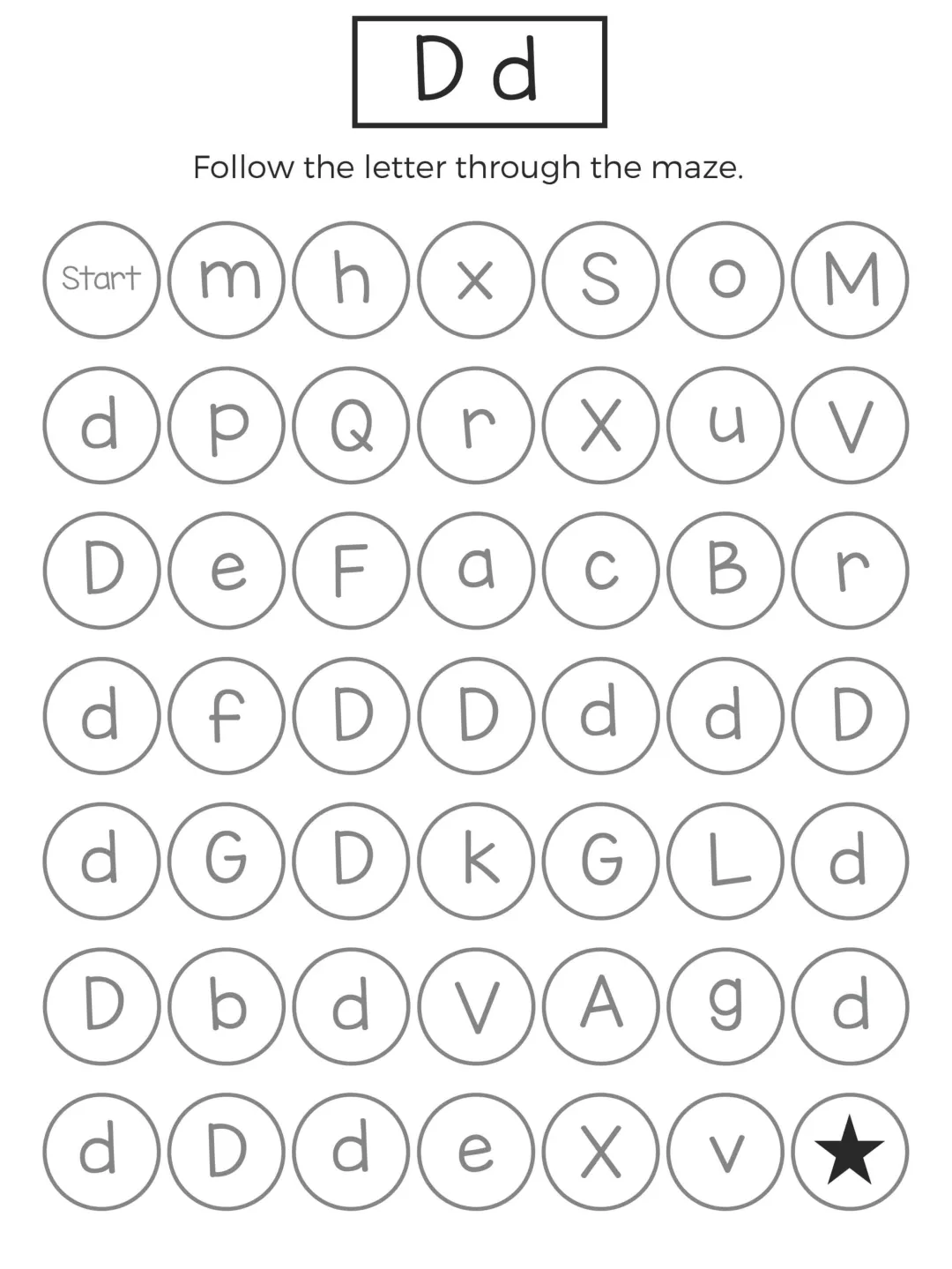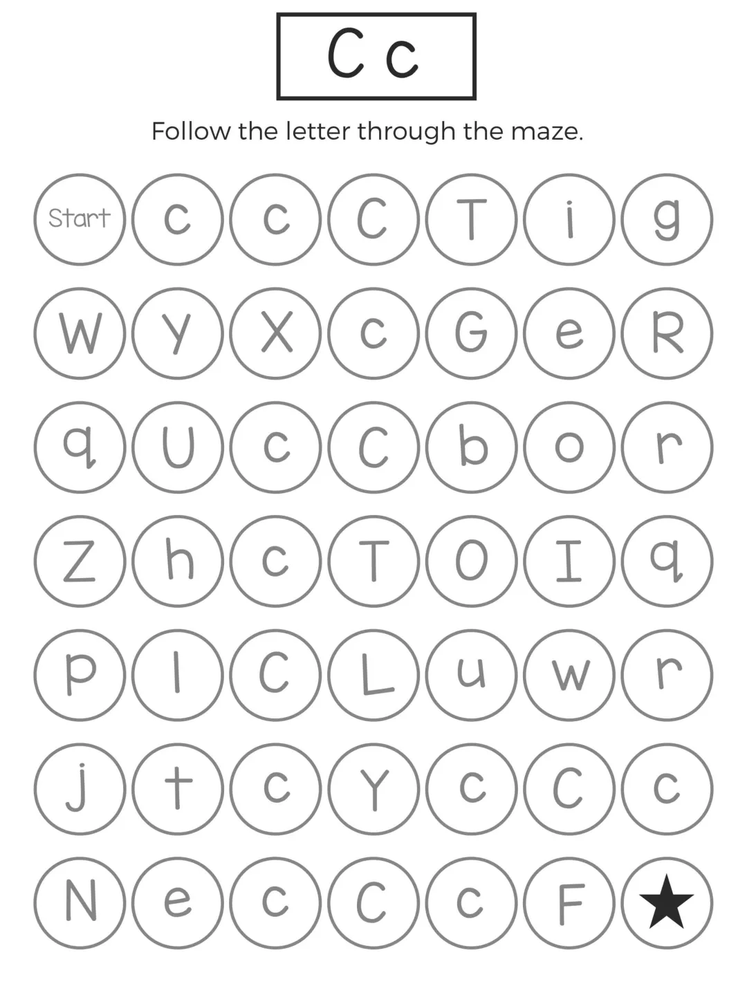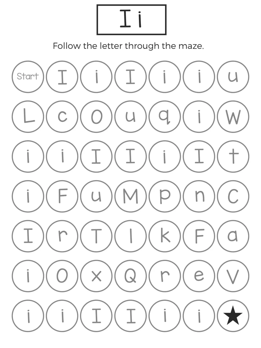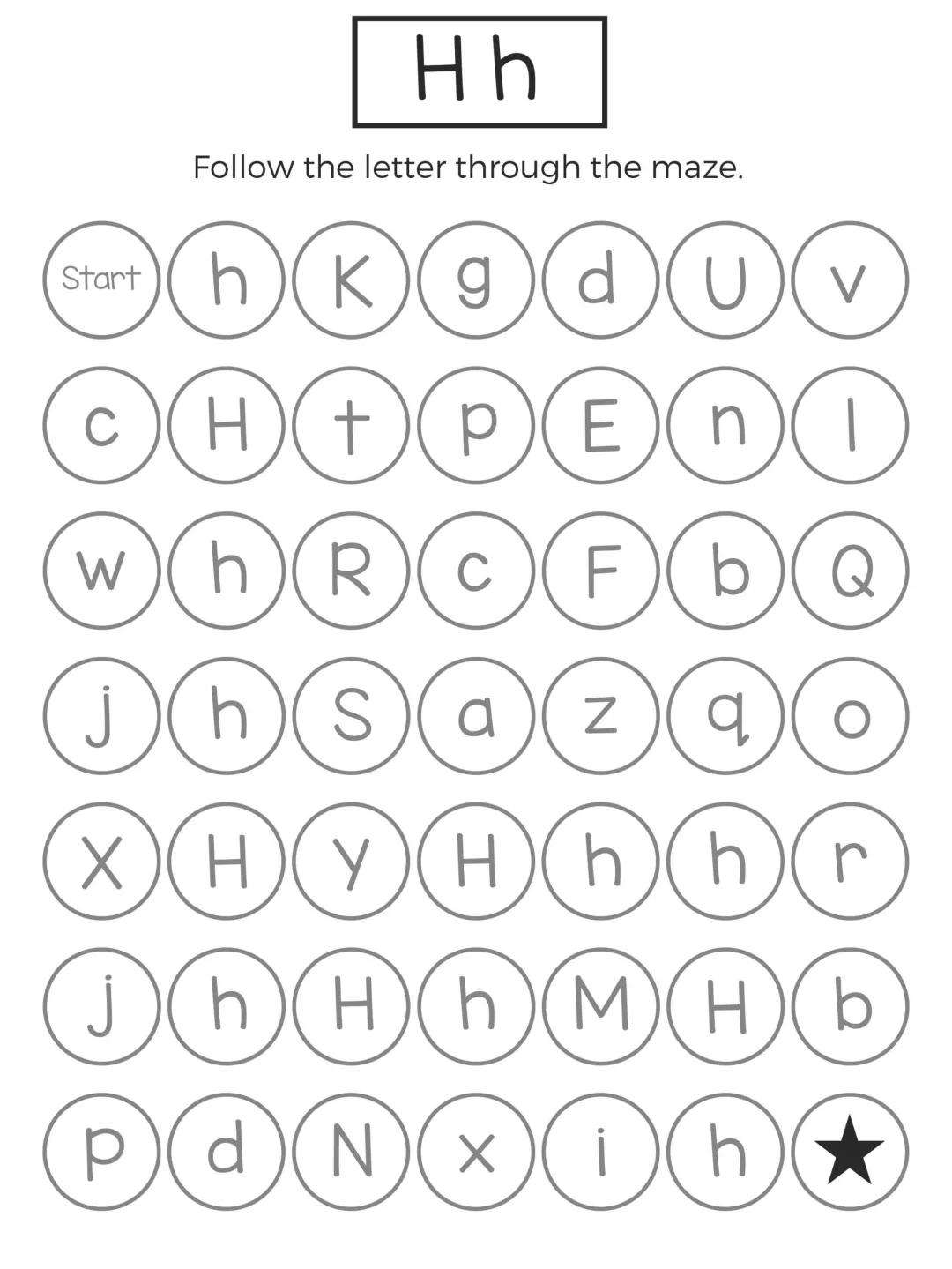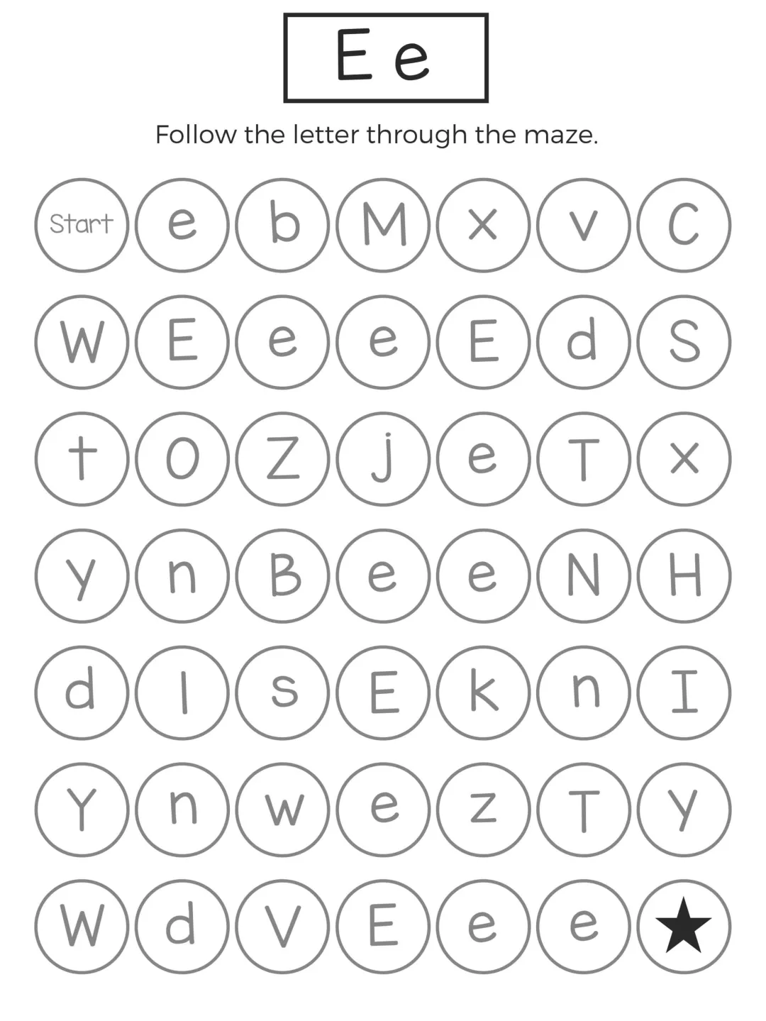 这份字母迷宫练习以闯关形式展开,孩子需要在杂乱字母中追踪目标字母,既能强化字母记忆,又能锻炼手眼协调和耐心,题型简单有趣、操作轻松,不用复杂工具就能练习,非常适合低龄孩子英语启蒙,在趣味游戏中轻松掌握 26 个字母的认读与区分。