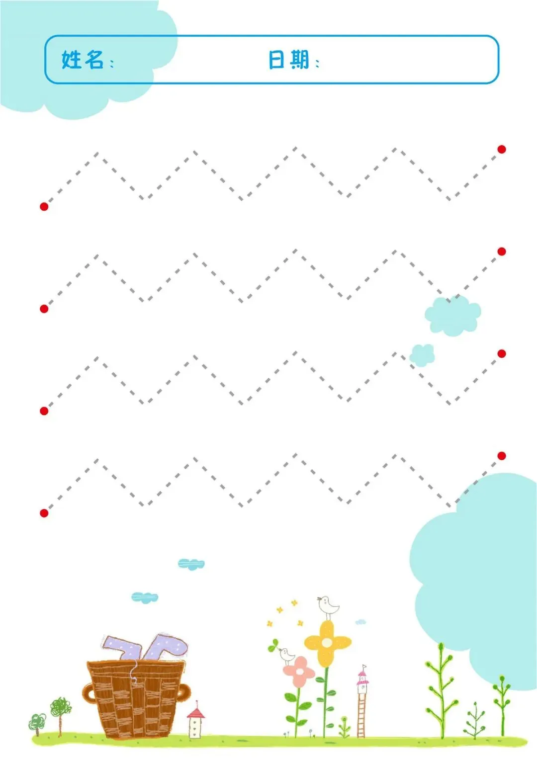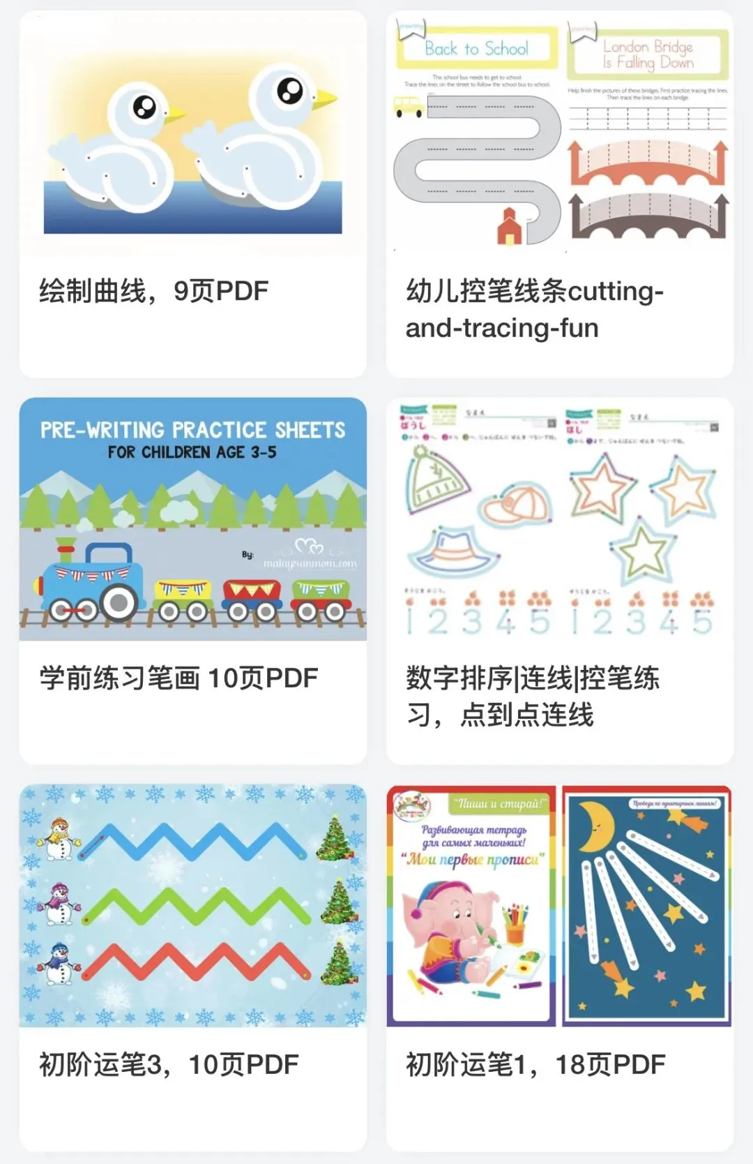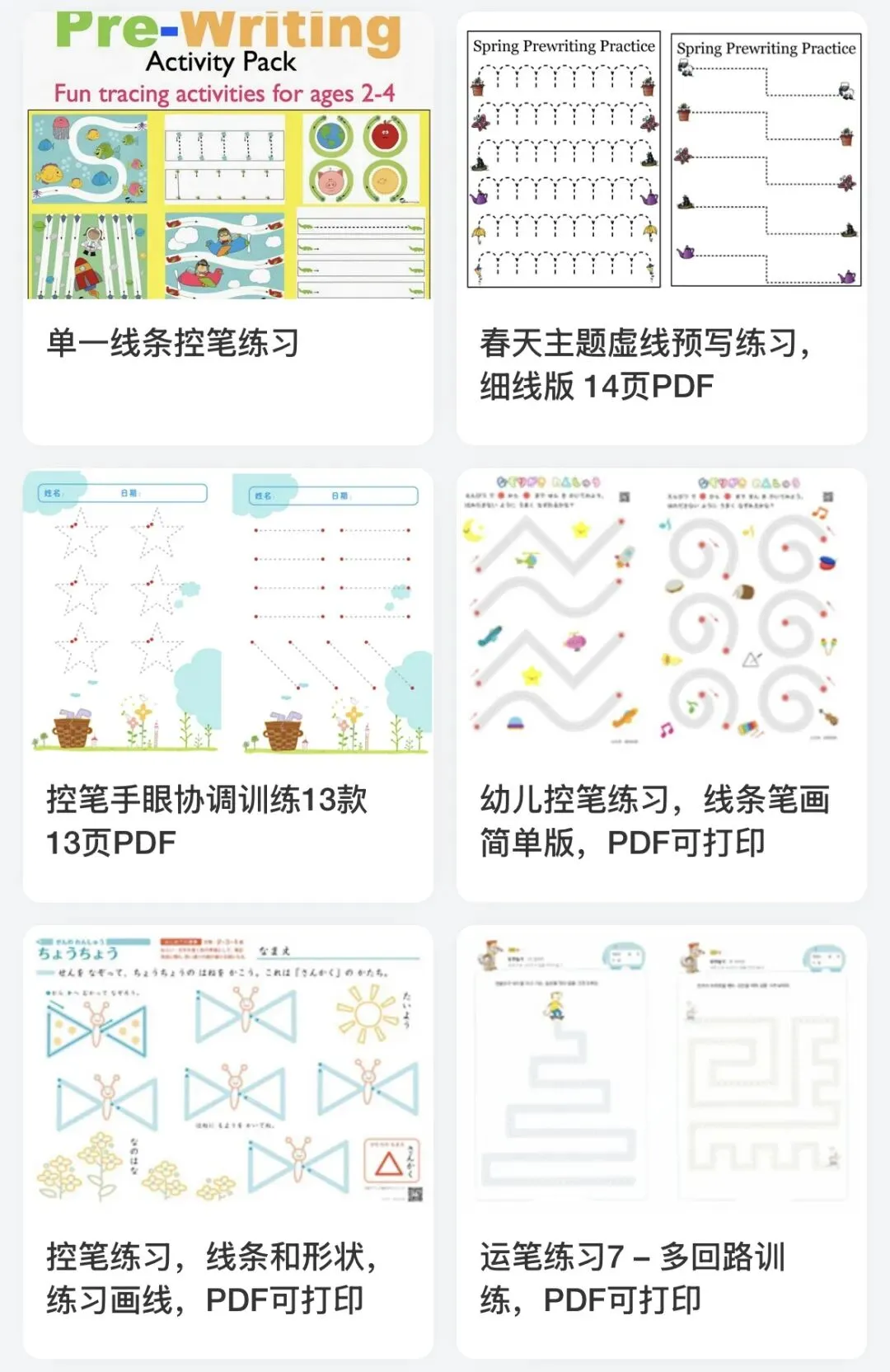 幼儿控笔训练可打印pdf,线条图形电子版13款大家好,这里是淘学学资料库,这份《控笔手眼协调训练 13 款》,完整 pdf 电子档共 13 页。这份资料专为孩子设计控笔与手眼协调专项训练,通过简单趣味的线条、图形、轨迹练习,帮助孩子锻炼手部小肌肉、提升握笔稳定性与视觉追踪能力,题型轻松不枯燥,适合零基础启蒙、幼小衔接以及刚入学的孩子使用,能有效改善写字歪扭、用力不当、注意力不集中等问题,为规范书写打下扎实基础。这份资料按每日一页的训练模式设计,每款练习都侧重手、眼、脑的配合,让孩子在趣味描画中提升专注力与控笔力度,训练内容循序渐进、简单易上手,不用复杂工具就能练,既能培养孩子正确的书写习惯,又能提升耐心和细致度,是提升控笔能力、改善书写姿势、做好书写启蒙的实用训练资料。(公众号底部菜单查看完整pdf获取方式)