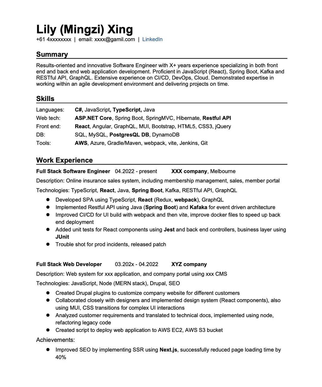 2⃣️ 土澳很少 IT 头部大厂,大部分公司做的东西很简单,同样简历也写的简单点好,不用写那么多数字去表示你很牛,能拿到面试的简历才是好简历
