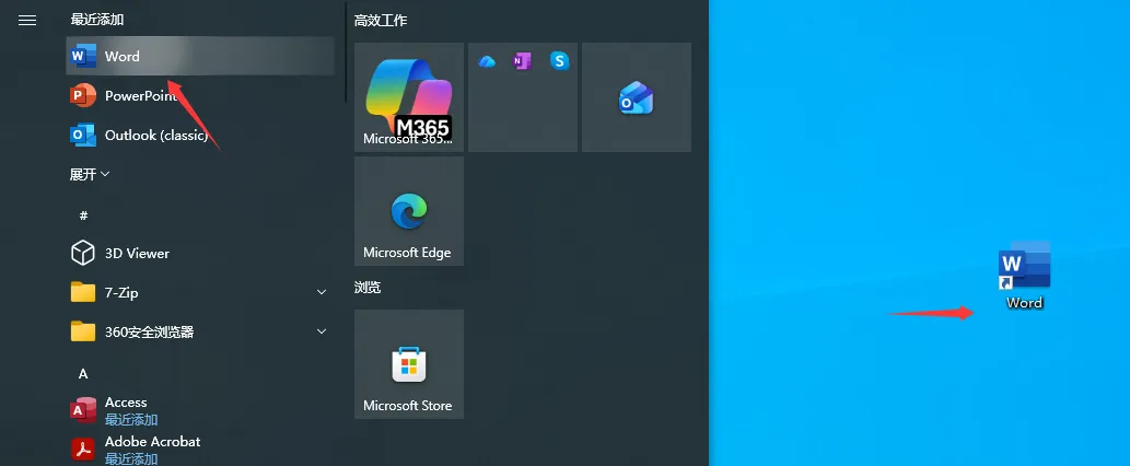 15:我们点击电脑的开始菜单栏,会提示最近添加的程序,在Office word上鼠标左键拖拽到桌面,即可创建word桌面快捷方式