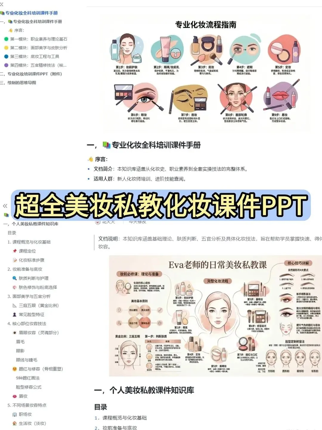 我也试过在素材网站乱翻,但拼凑出来的化妆新手教学PPT逻辑混乱,东一张西一张,讲课的时候自己都接不上茬。那种教学内容碎片化带来的“廉价感”,让我每次面对高客单价的私教咨询时,都底气不足,生怕被看穿。