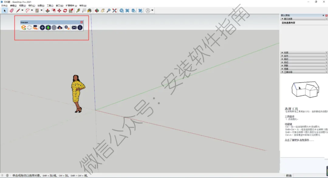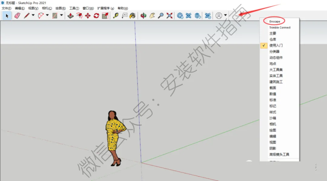 15、若在软件界面没有Enscape工具条,则在如下图工具栏右侧空白处,鼠标右击,选择Enscape,调出Enscape工具条