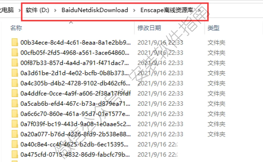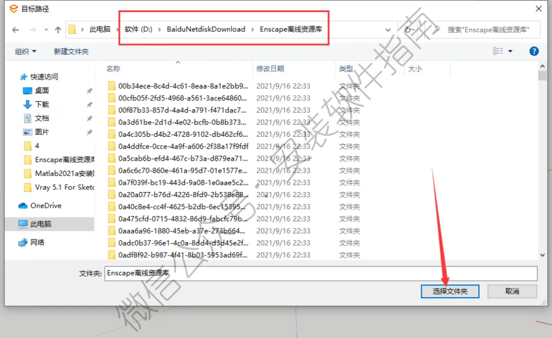 23、在跳出的框内找到第18步让你记住的路径,选到Enscape离线资源库文件夹