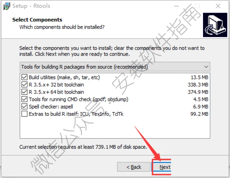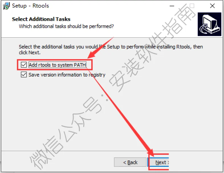 17、勾选Add rtools....,然后点Next