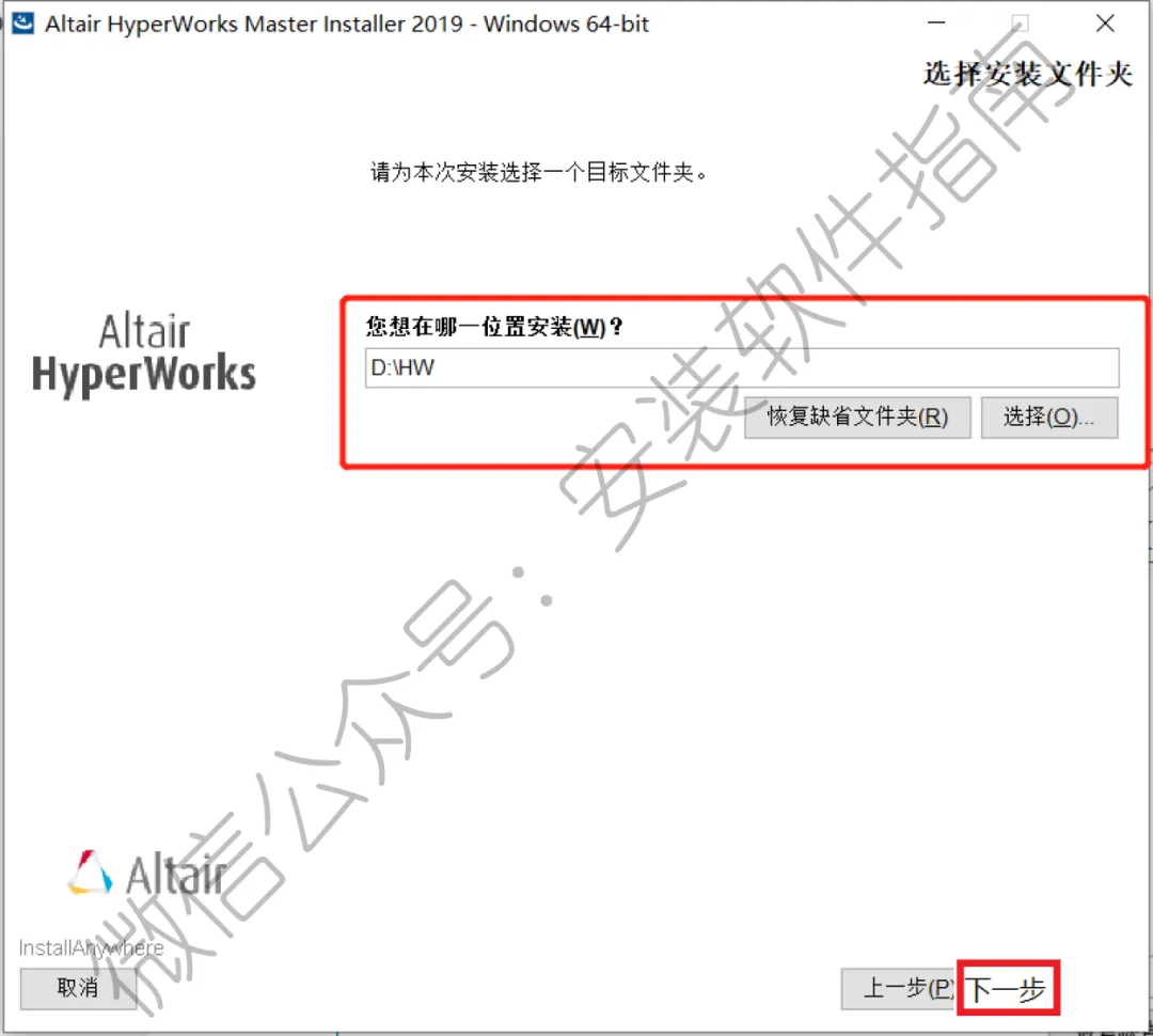 7.点击【选择】可更改安装位置(建议不要安装在C盘,可以在D盘或其它磁盘下新建一个“HW”文件夹。注:安装路径中不能有中文),点击【下一步】