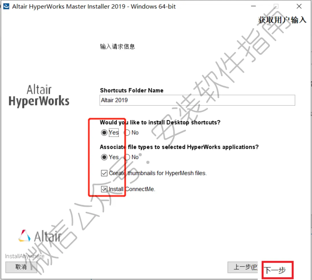 8.分别选择【Yes】和勾选【Creat……、Install……】,点击【下一步】