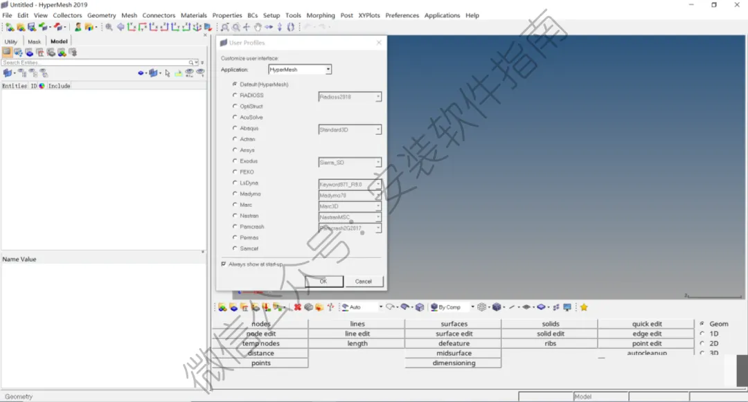 我跟你们说,HyperWorks这软件,说白了就是个做工程仿真的工具,不用扯那些专业定义。简单讲就是,学机械、汽车、航空相关的,要做零件结构分析、网格划分,或者模拟零件受力、振动这些,用它就能搞定。它不是单纯画模型的,重点是“仿真”,就是提前模拟零件用的时候会不会坏、受力合不合理,省得做实物再试错。真的,它就是给我们这些做工程设计的人省事儿的,不管是学生党做课设、练仿真,还是打工人做项目、优化零件设计,用它都特合适。它界面巨复杂,全是英文,模块还多,第一次用的时候,我是真懵圈。说实话,我第一次用它,是大学做机械课设,要做简单的零件强度仿真,老师说它好用,推荐我用这个,我才硬着头皮接触。