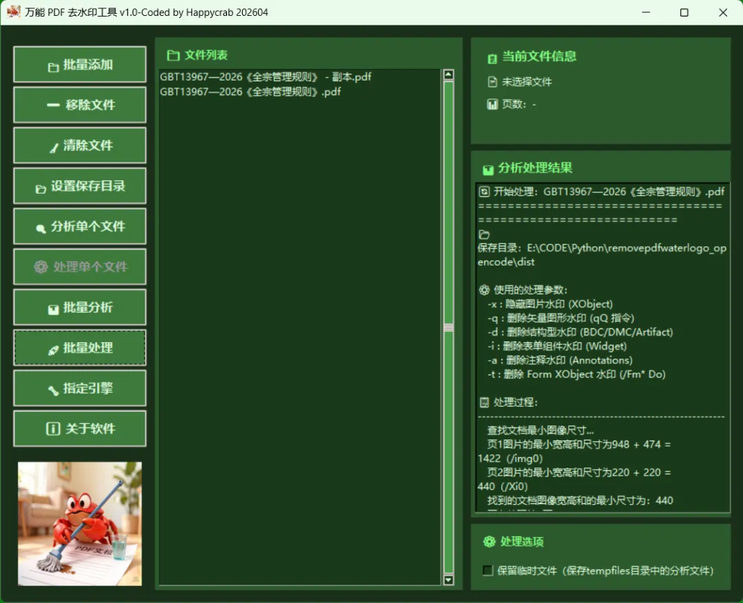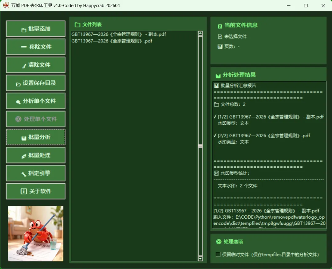 - ✅ 可选保留临时分析文件