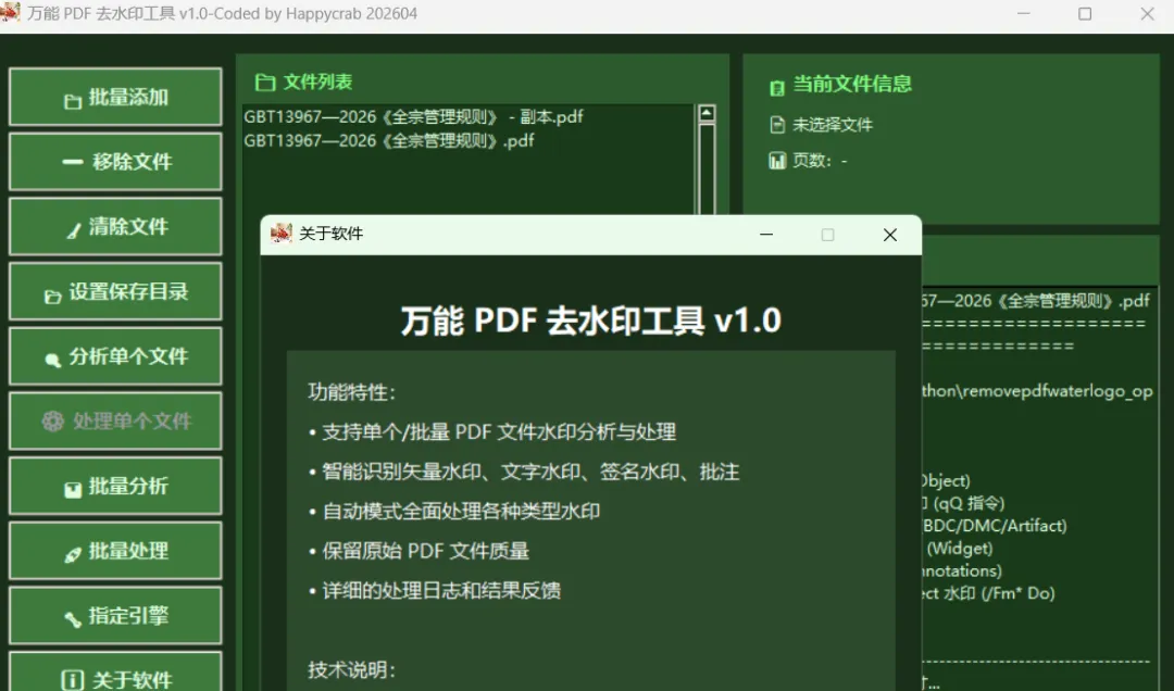 **项目名称**:万能 PDF 去水印工具 v1.0