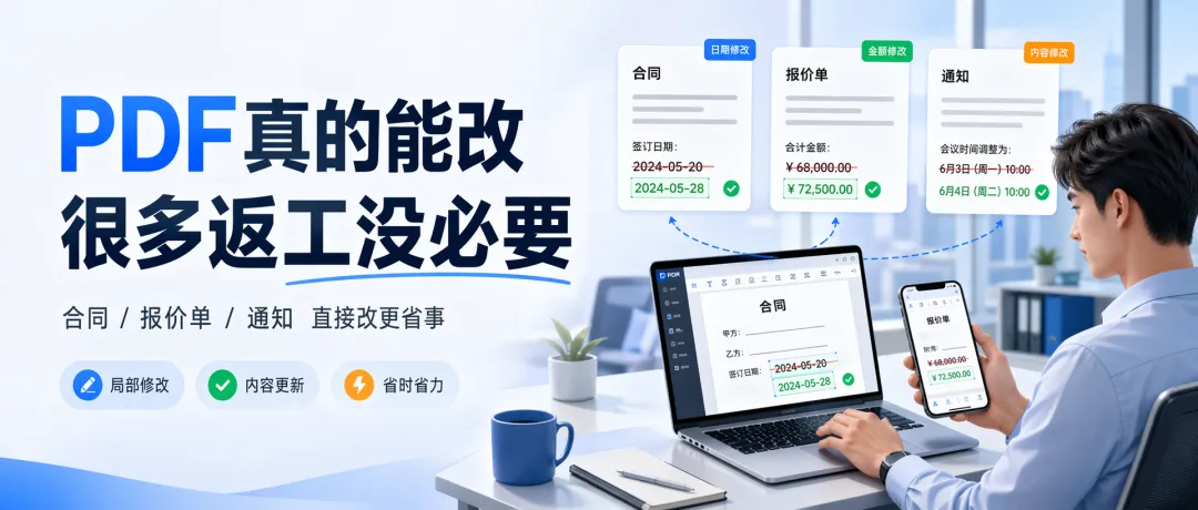 如果每次都走“找源文件 → 改 Word → 再导出 PDF”这条路,时间基本都浪费在流程上了。小改动,直接改PDF会更省事