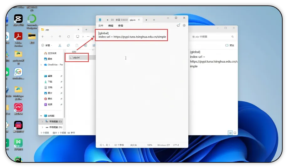 5)点击文件夹里的pip文件,查看里面的内容,出现如图内容说明镜像源安装成功。