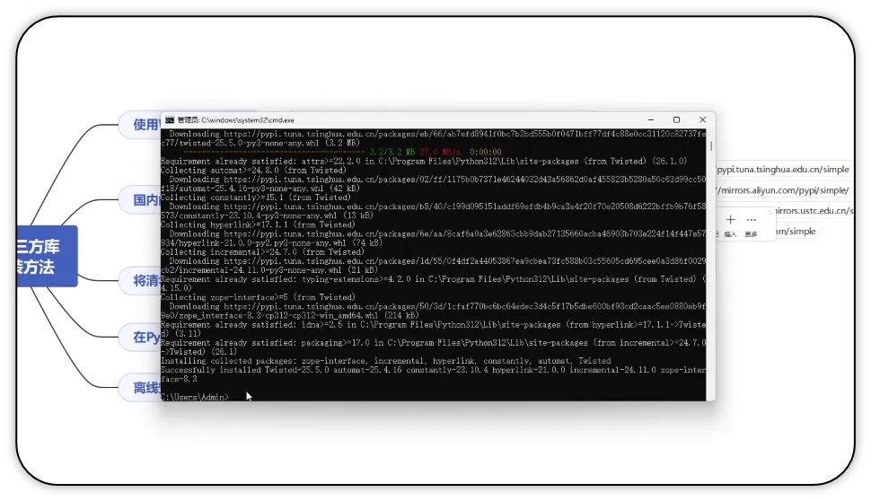 7)等待执行完成,Twisted库安装成功。