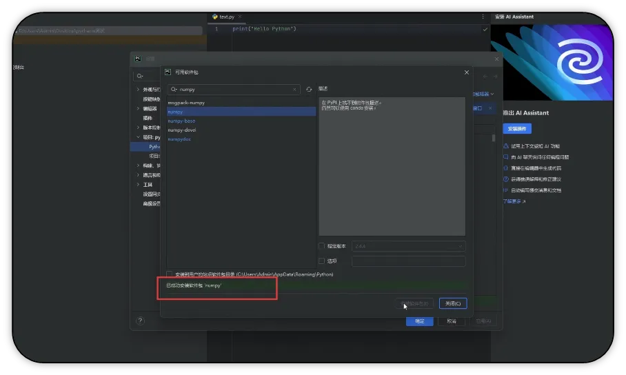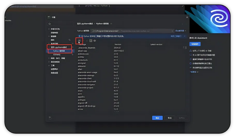 4. 在PyCharm中直接安装