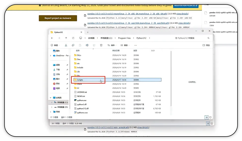 10)打开python所在的文件夹,打开scripts文件夹。