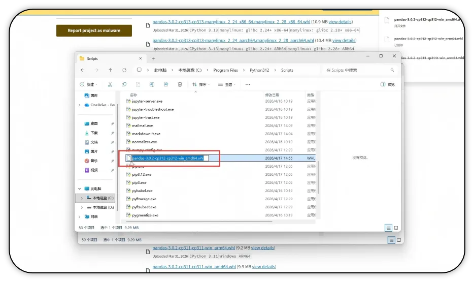 12)复制刚刚粘贴的文件名,包括后面的whl后缀。