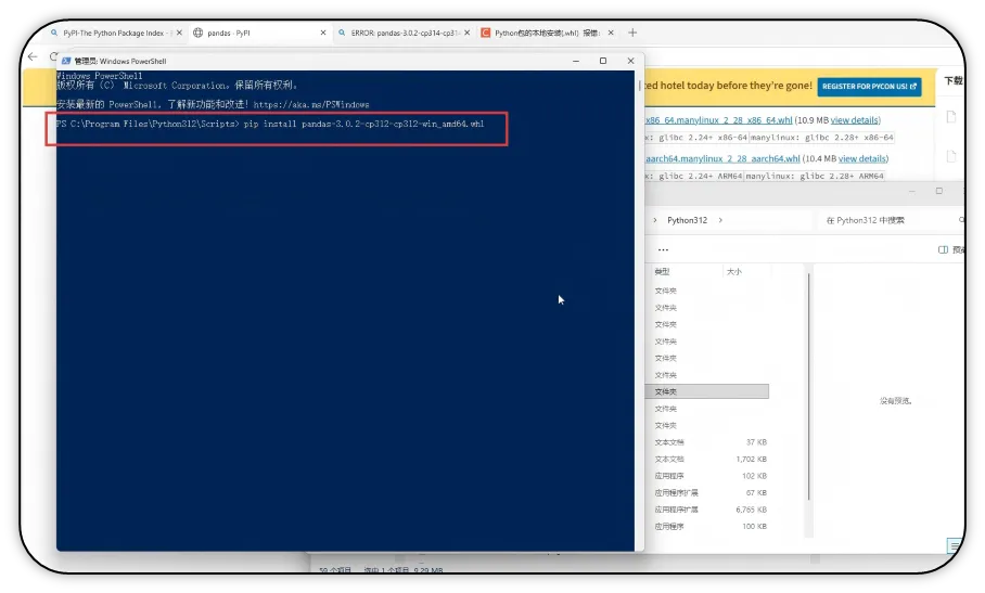 14)输入pip install+复制的文件名,按回车键。