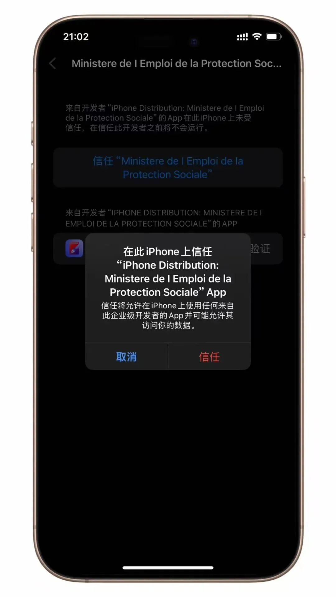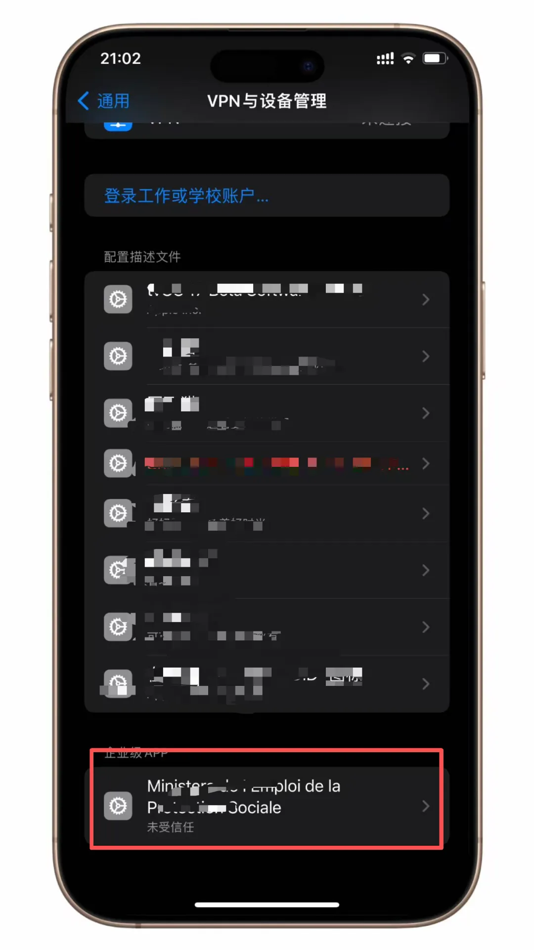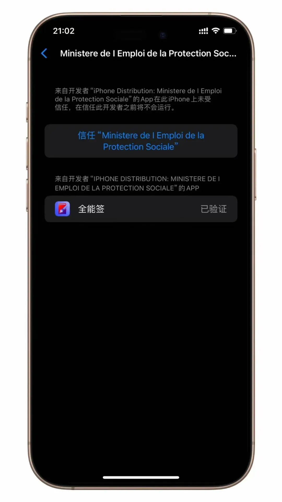 此时需要信任才可以正常打开,点击手机设置-通用-VPN与设备管理,下拉最下边点开进行信任,完成之后就可以正常打开全能签了