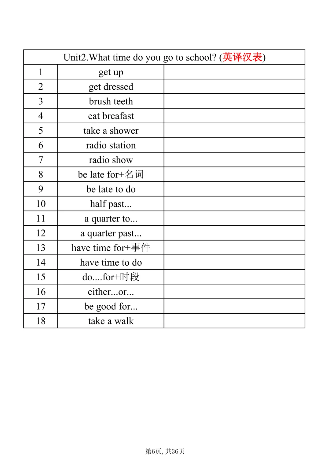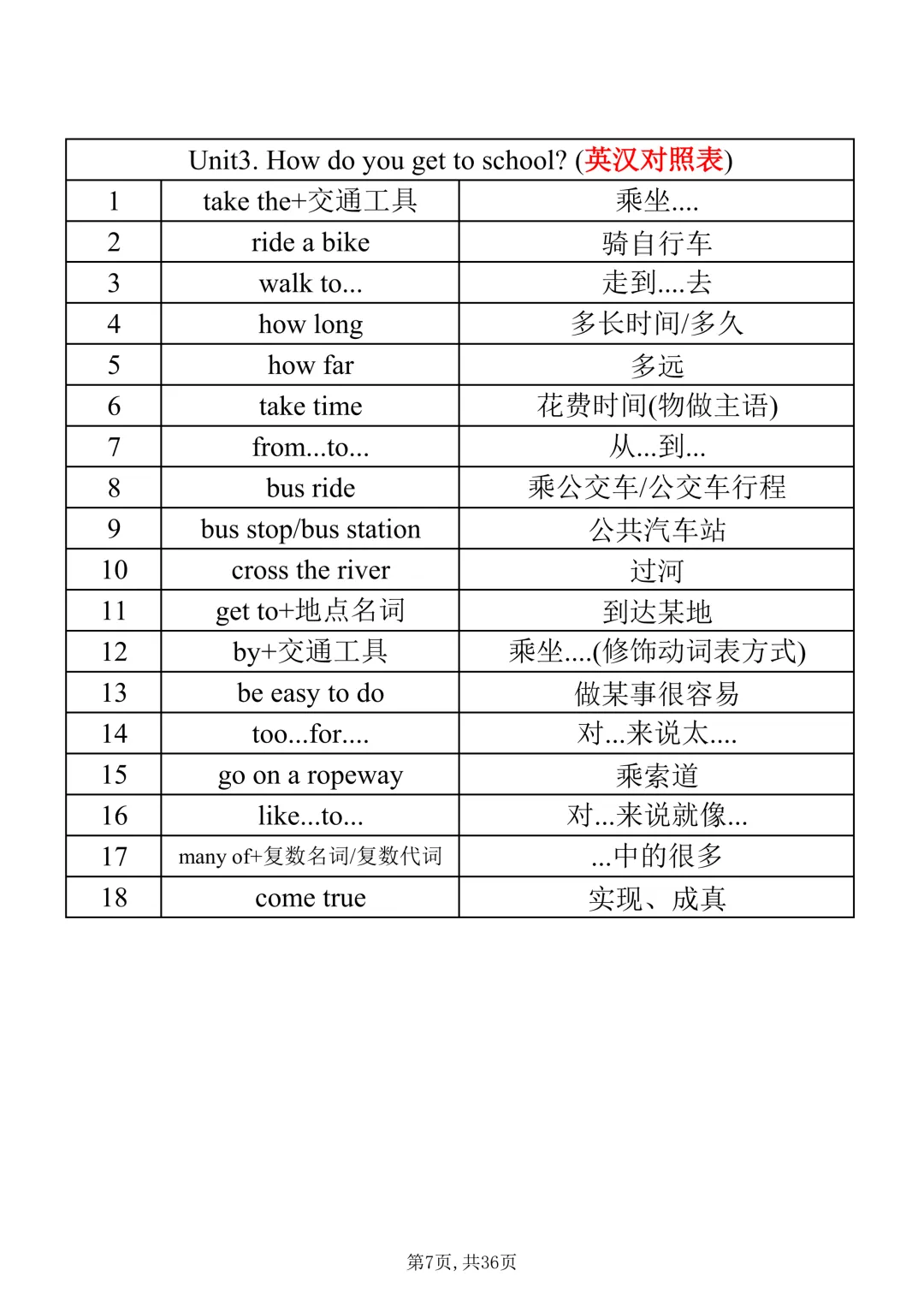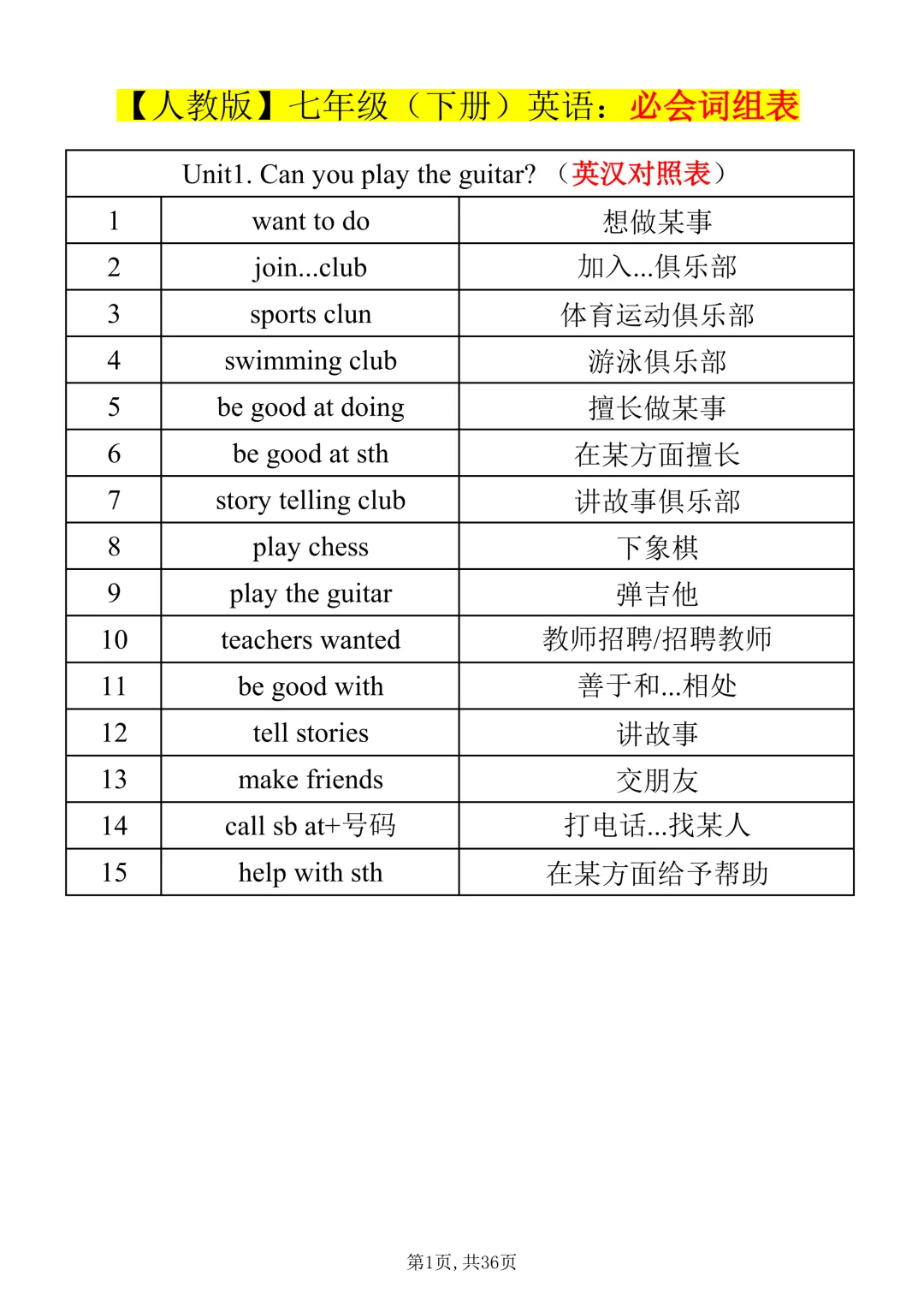 七年级下册英语|【人教版】必会词组表(pdf电子版含答案,可下载打印)