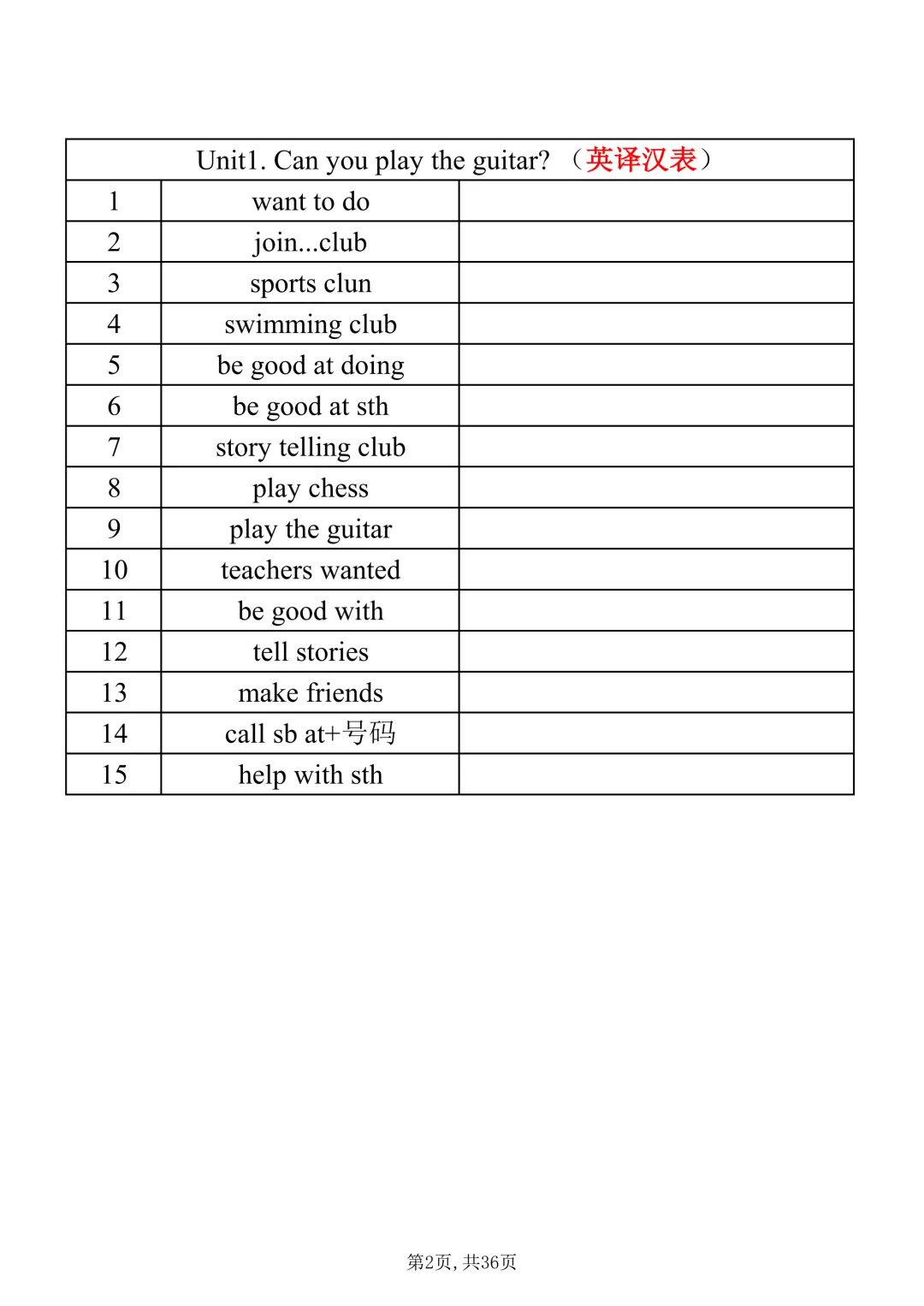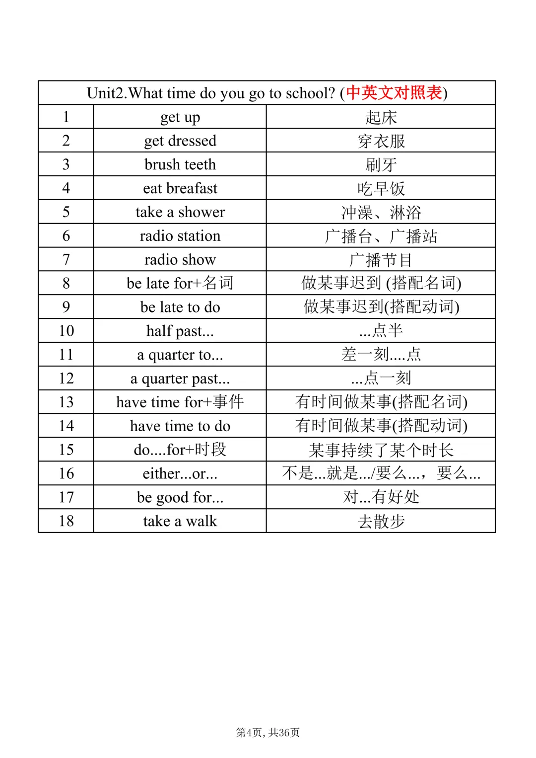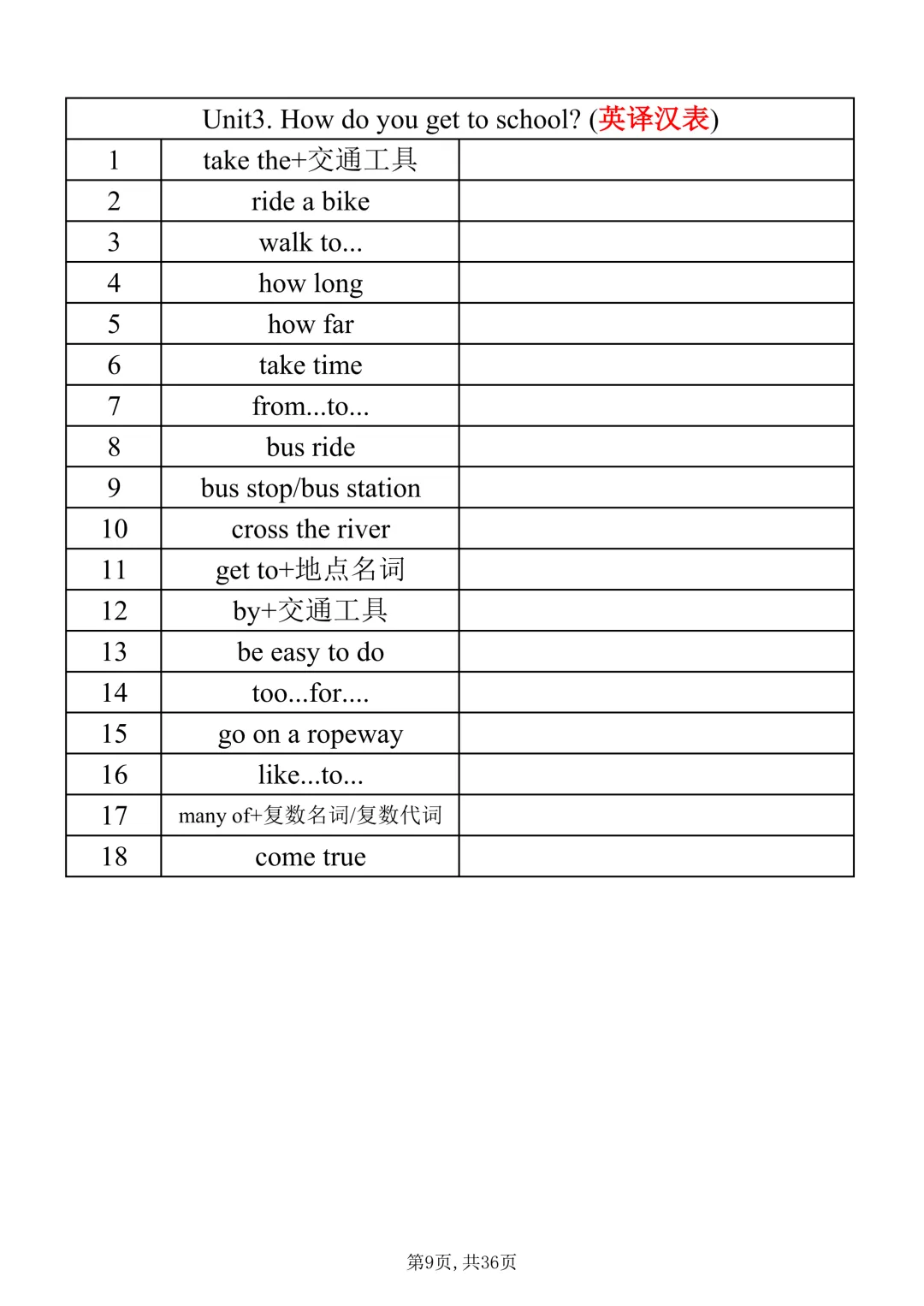 七年级下册英语|【人教版】必会词组表(pdf电子版含答案,可下载打印)