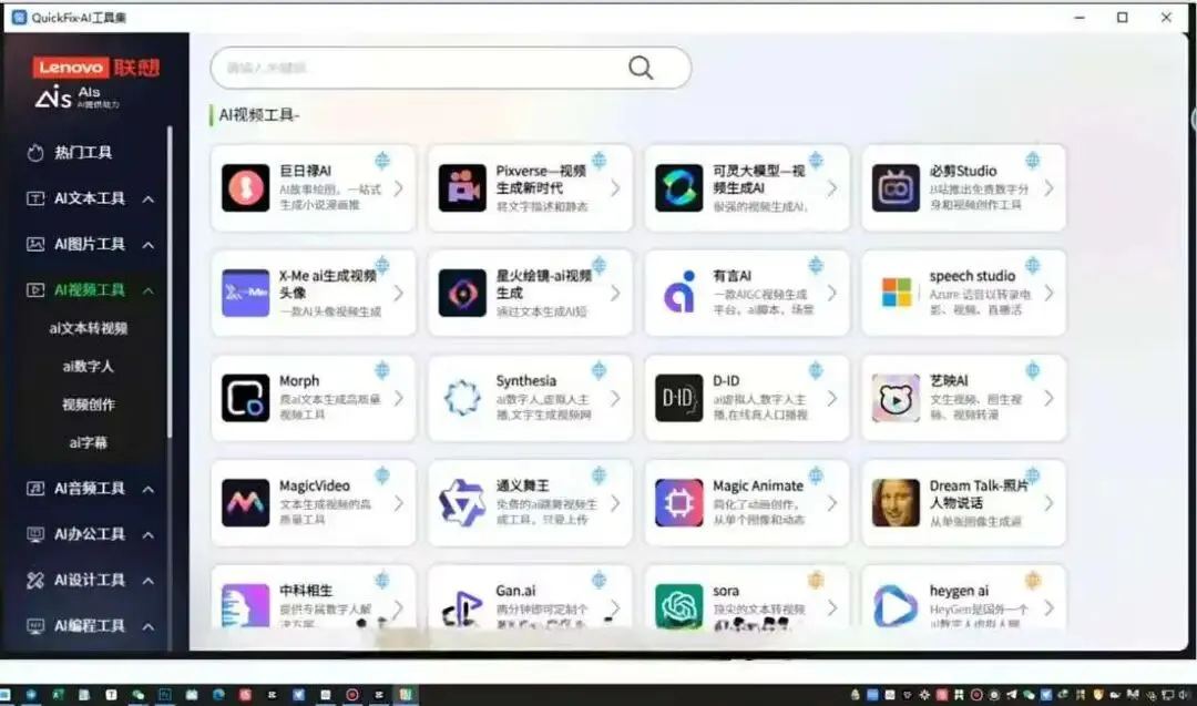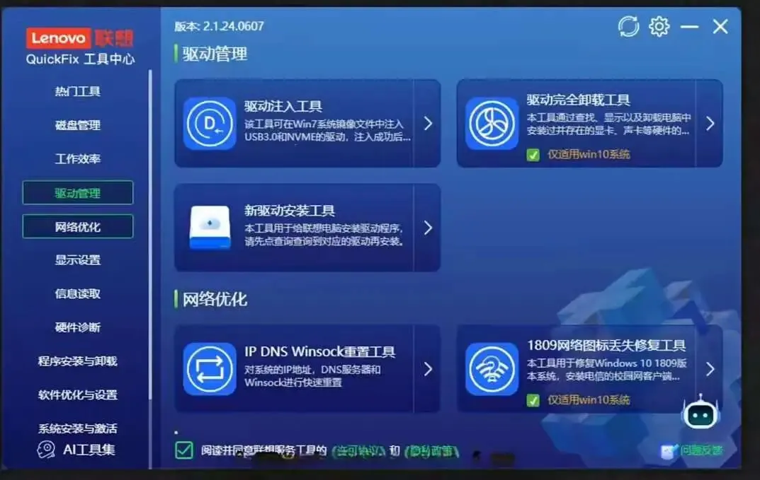 Lenovo QuickFix集合100+实用工具,覆盖AI图片、AI音频、AI办公、AI设计以及系统优化、维护等工具,提升办公效率,快捷解决电脑问题,本次为大家带来了该款绿色纯净的强大工具。