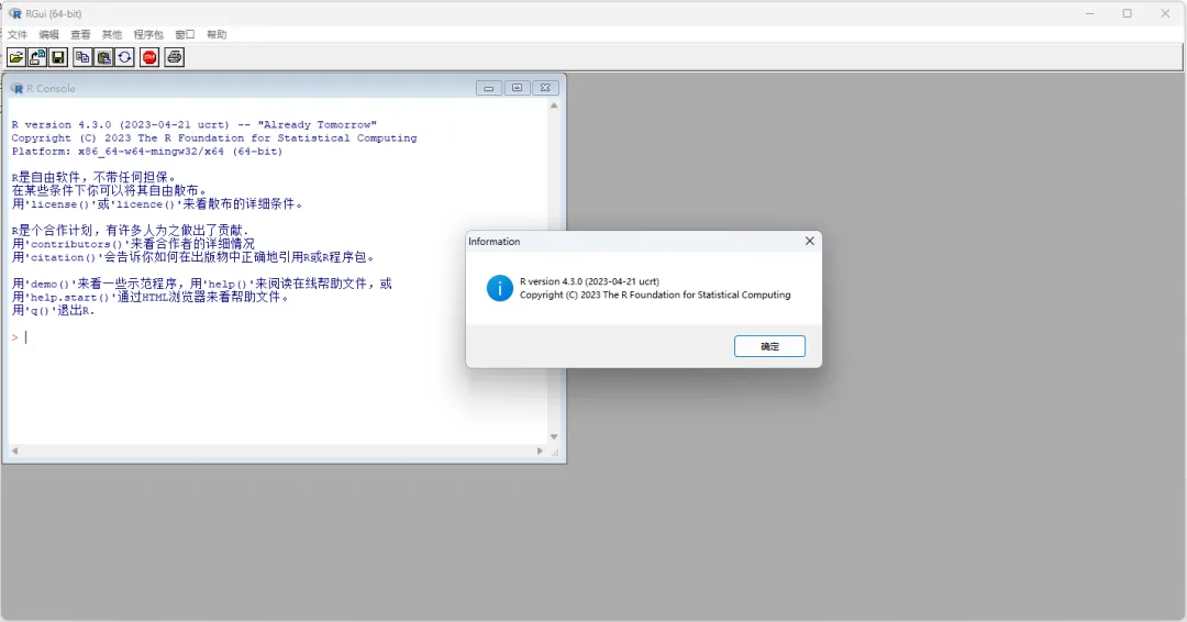 20、输入:R,点击回车(Enter)键,查看R是否安装成功和环境配置成功与否