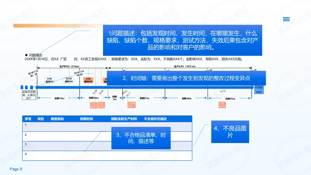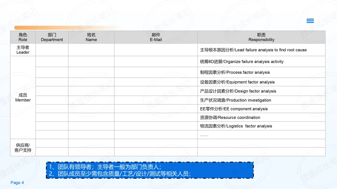 系统化流程:从发现问题到标准化,9步闭环,避免遗漏和重复。 团队协作:通常4-10人的跨部门小组,共享技术、生产、质量等不同视角。 预防导向:不止于“止血”,更注重源头治理,让类似问题不再回来。