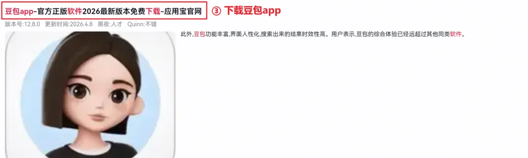 方式1:打开【应用市场】搜索豆包,点击【去获取】,即可打开豆包网页版。