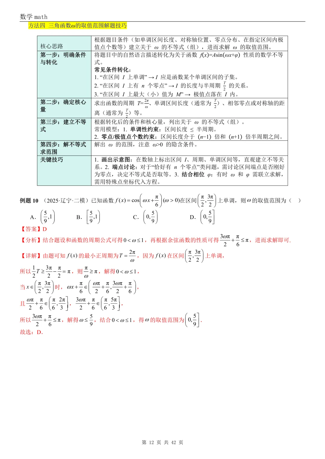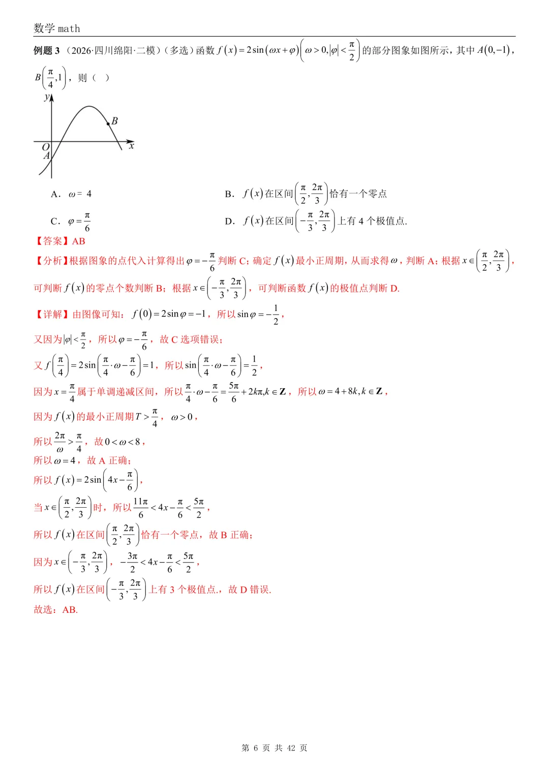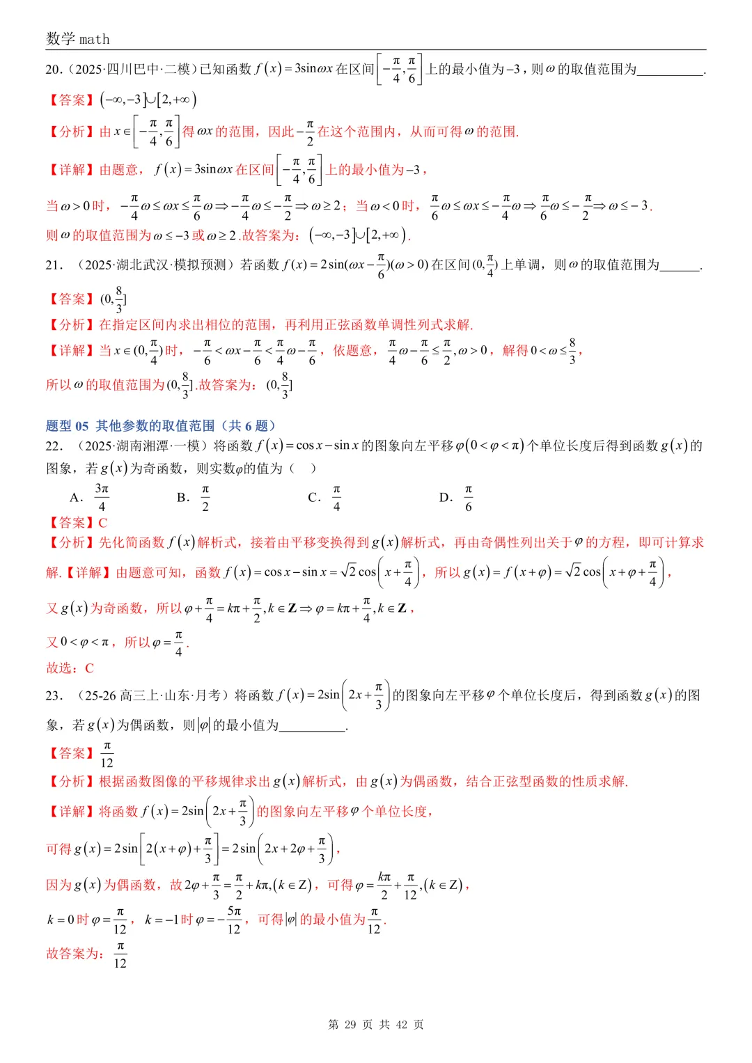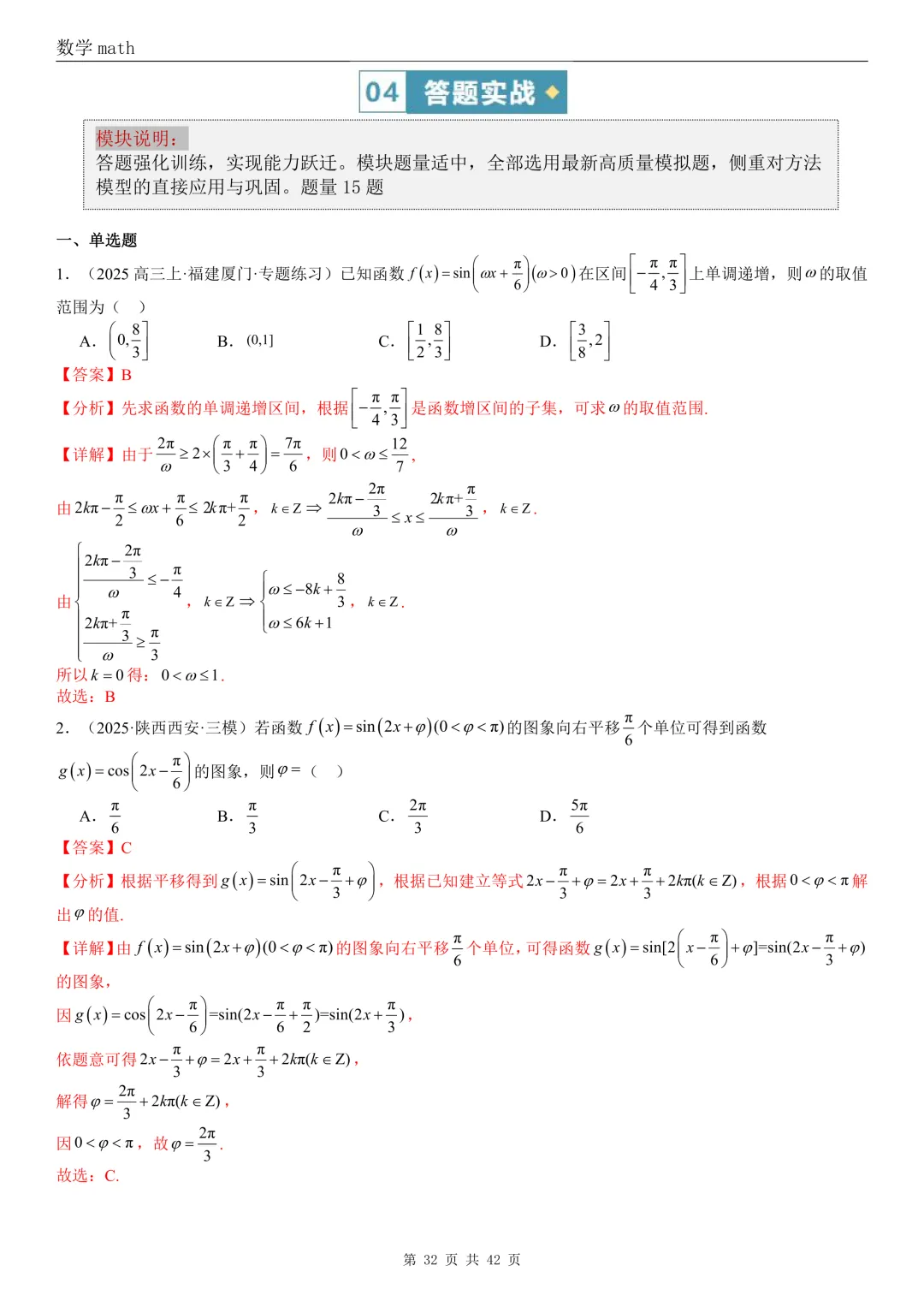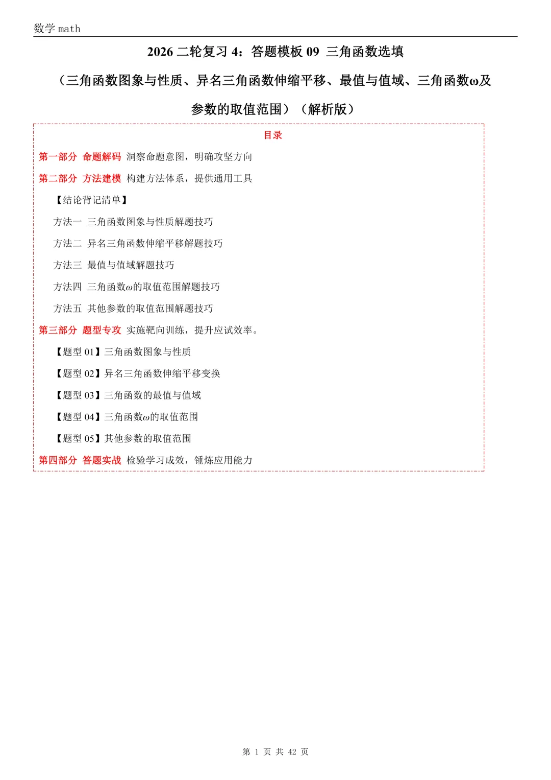 2026二轮复习4:答题模板09 三角函数选填(三角函数图象与性质、异名三角函数伸缩平移、最值与值域、三角函数ω及参数)(解析版)