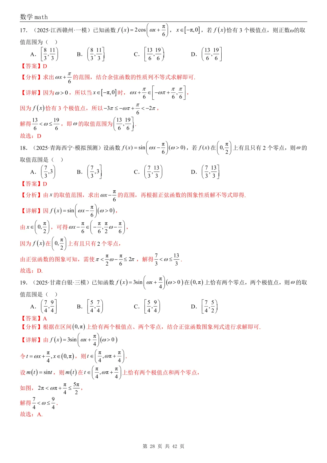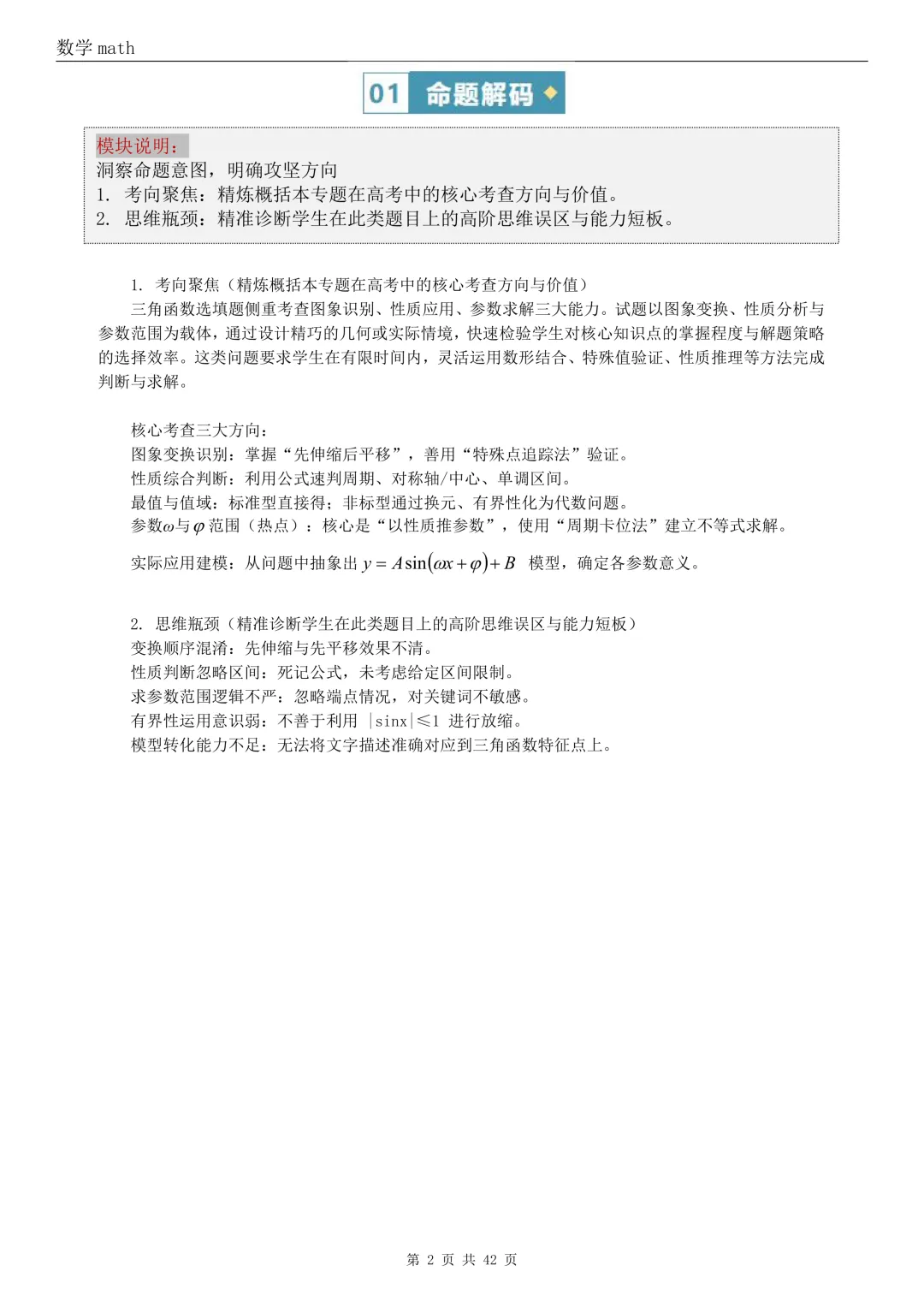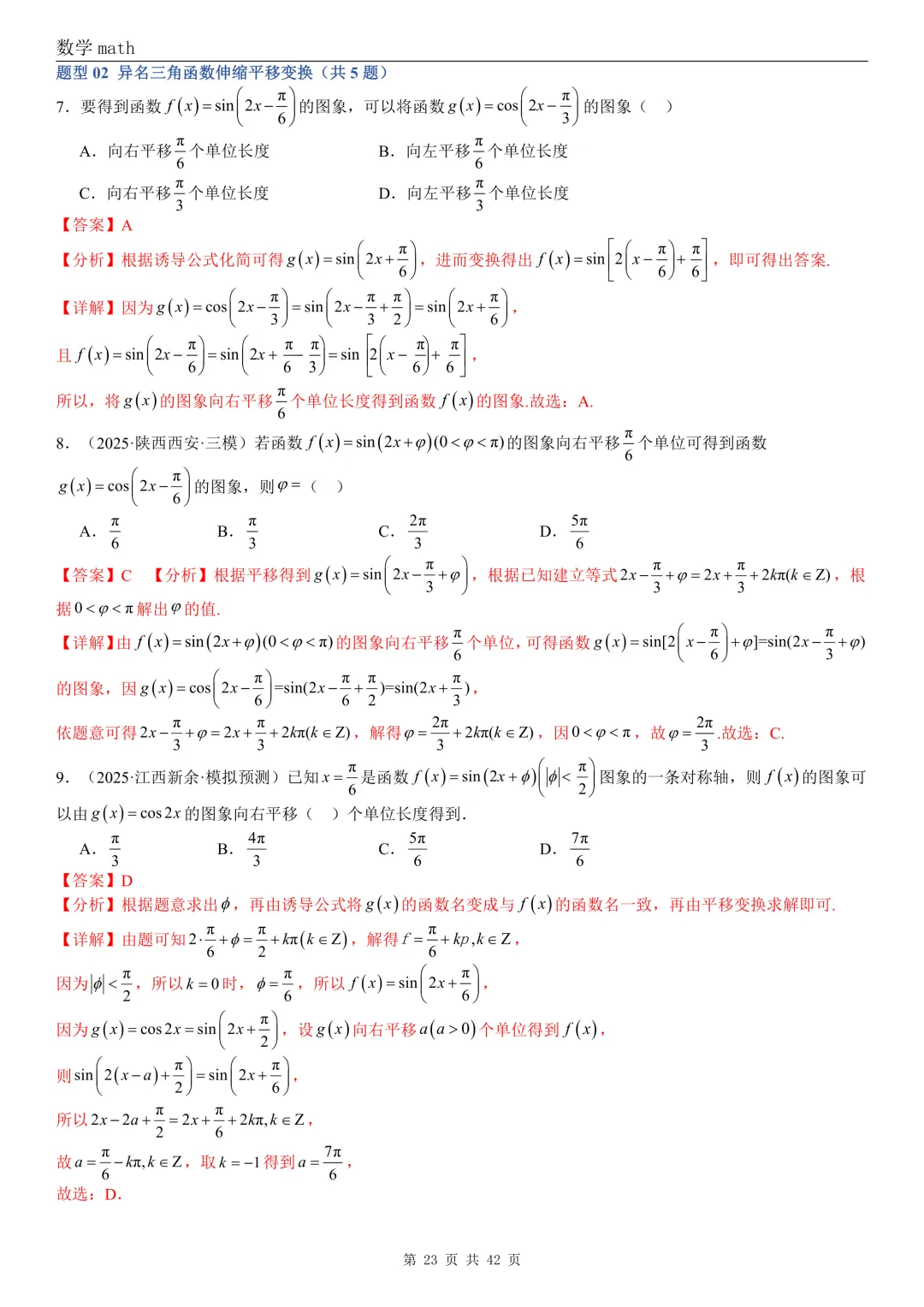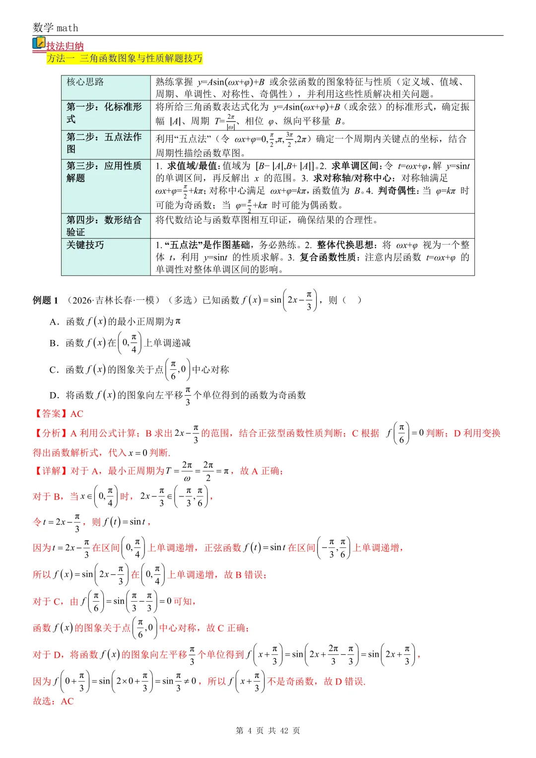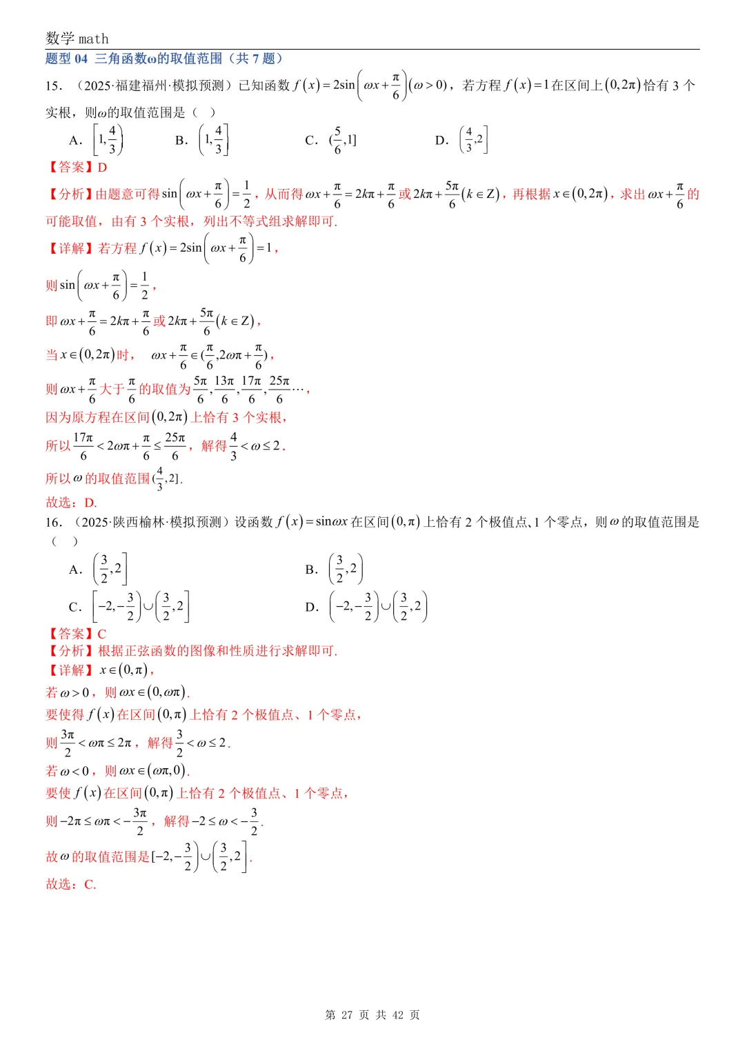 2026二轮复习4:答题模板09 三角函数选填(三角函数图象与性质、异名三角函数伸缩平移、最值与值域、三角函数ω及参数)(解析版)