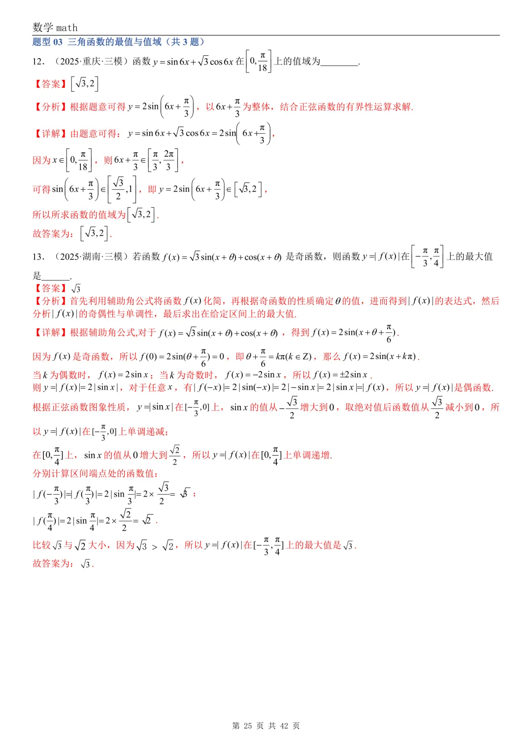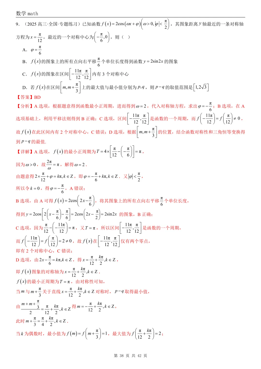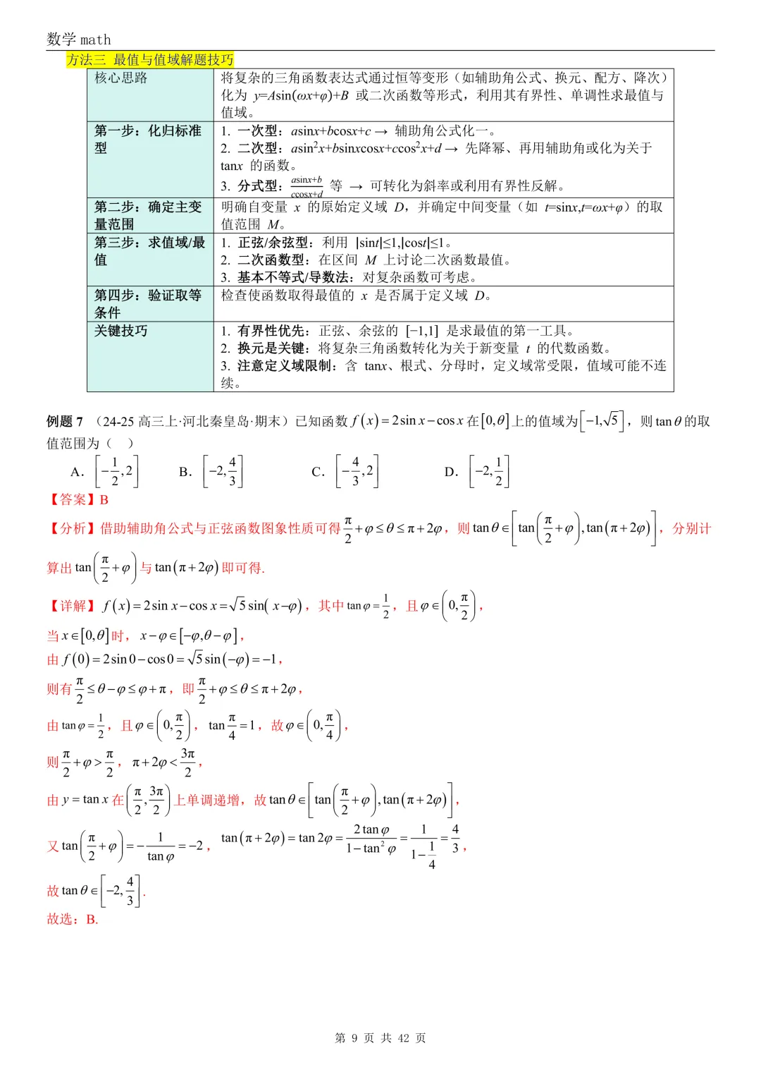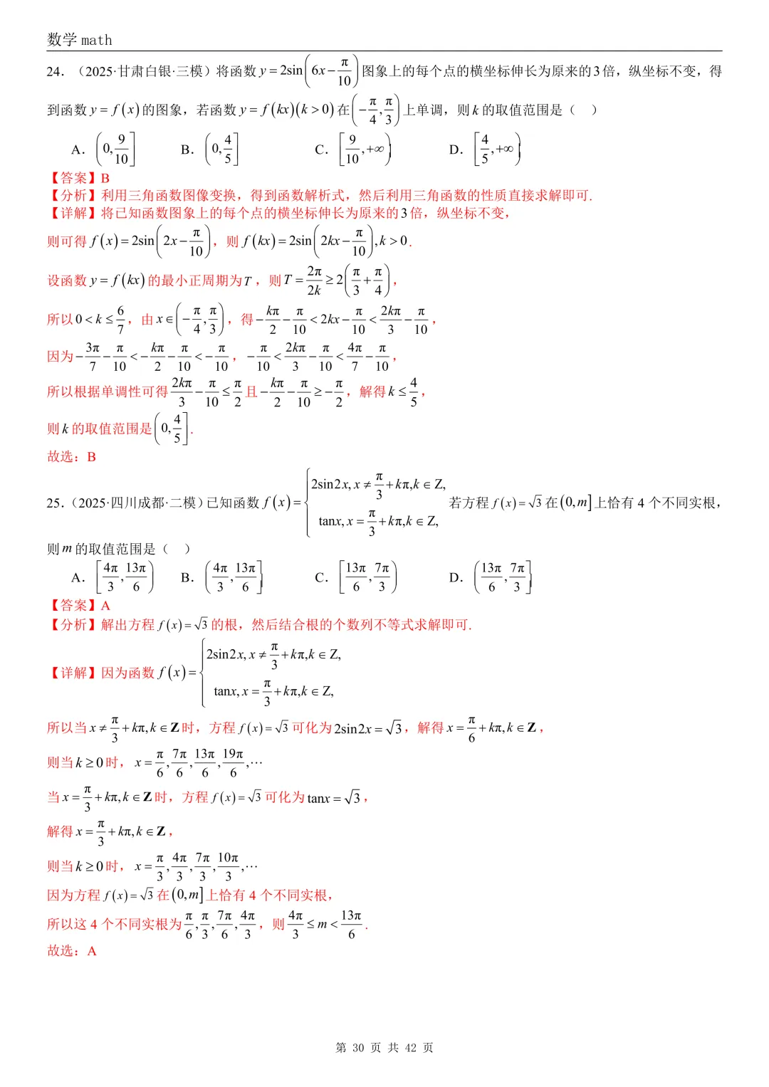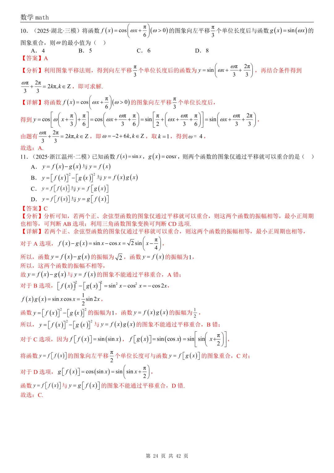 2026二轮复习4:答题模板09 三角函数选填(三角函数图象与性质、异名三角函数伸缩平移、最值与值域、三角函数ω及参数)(解析版)