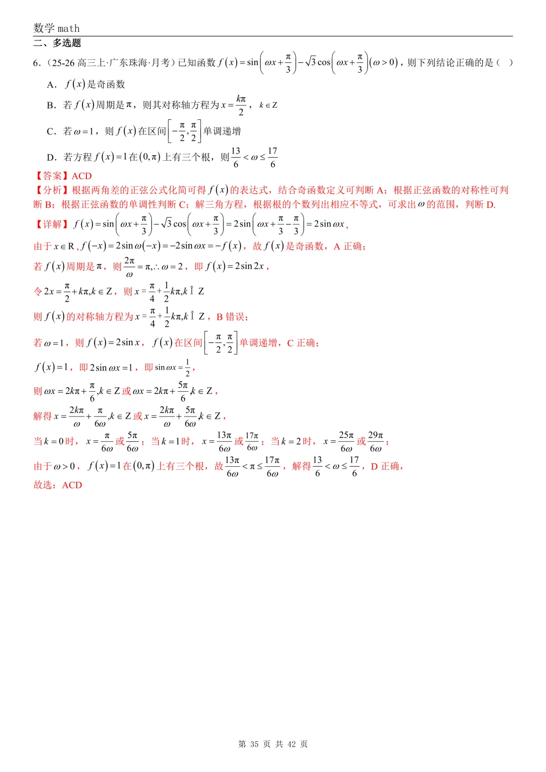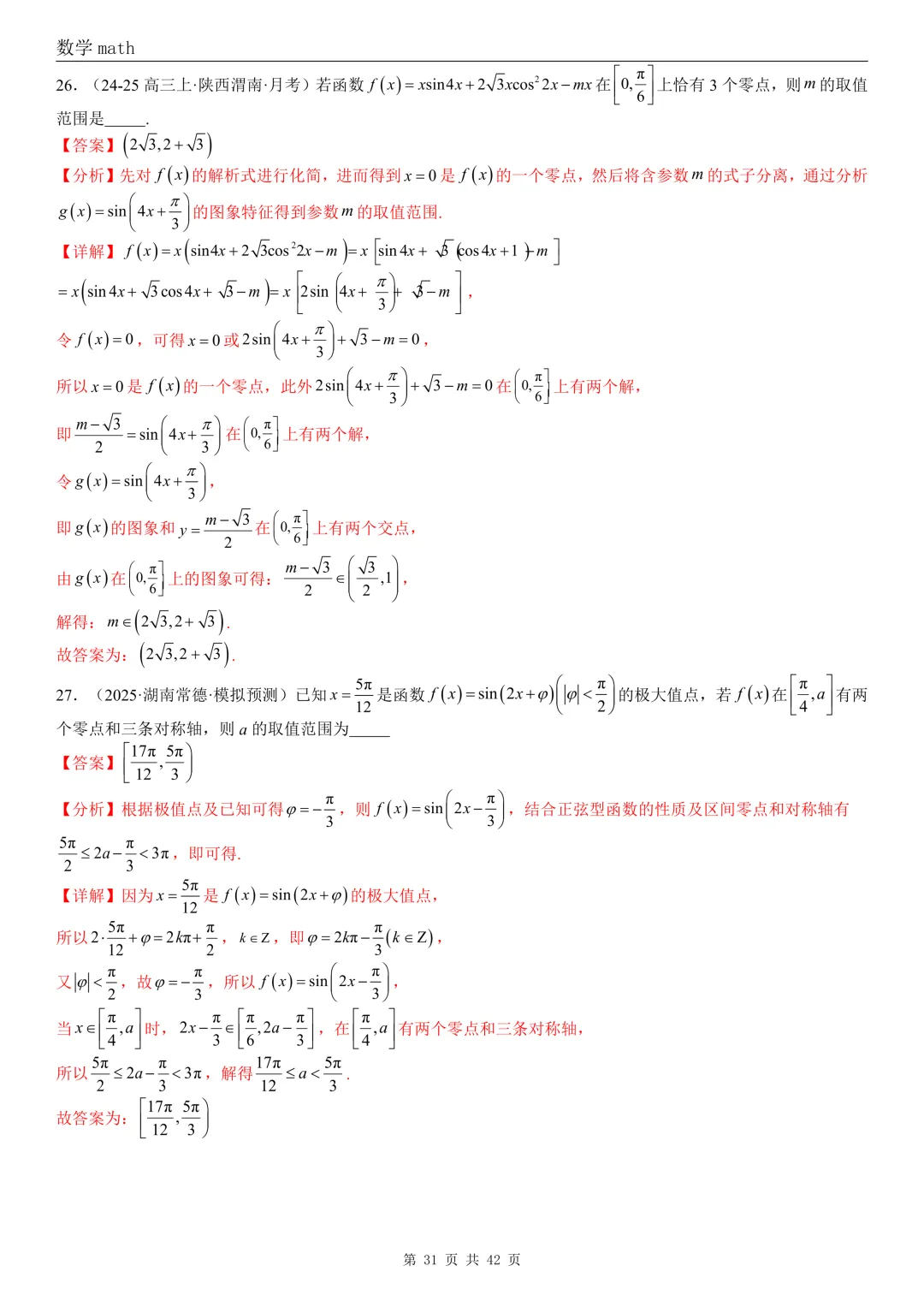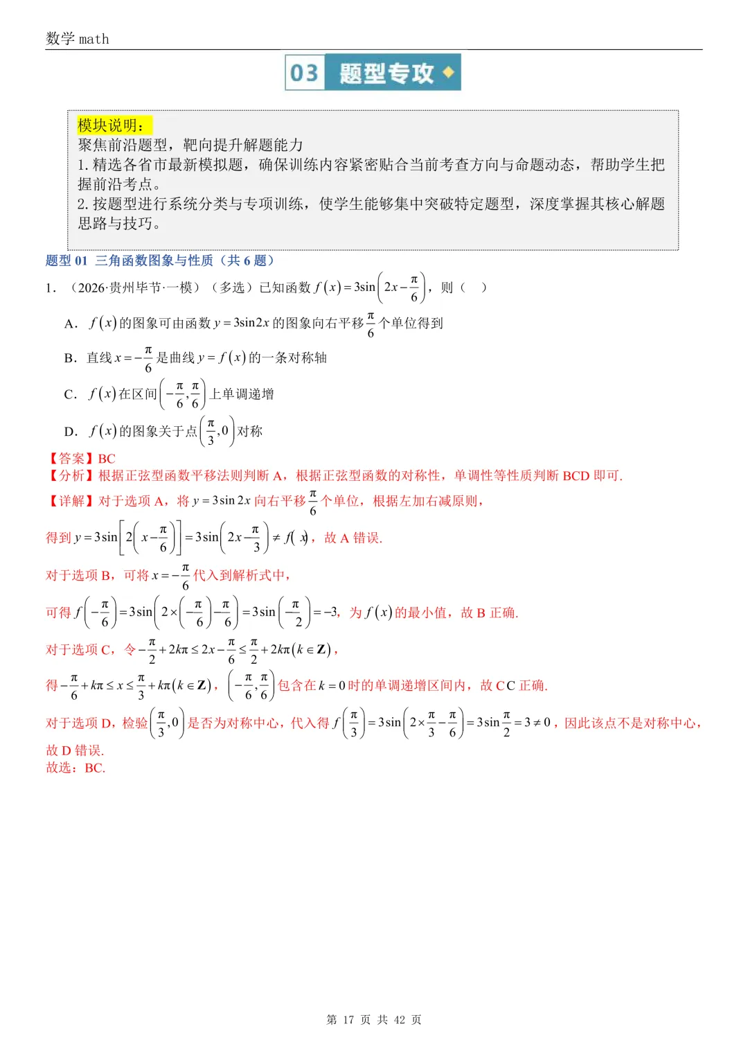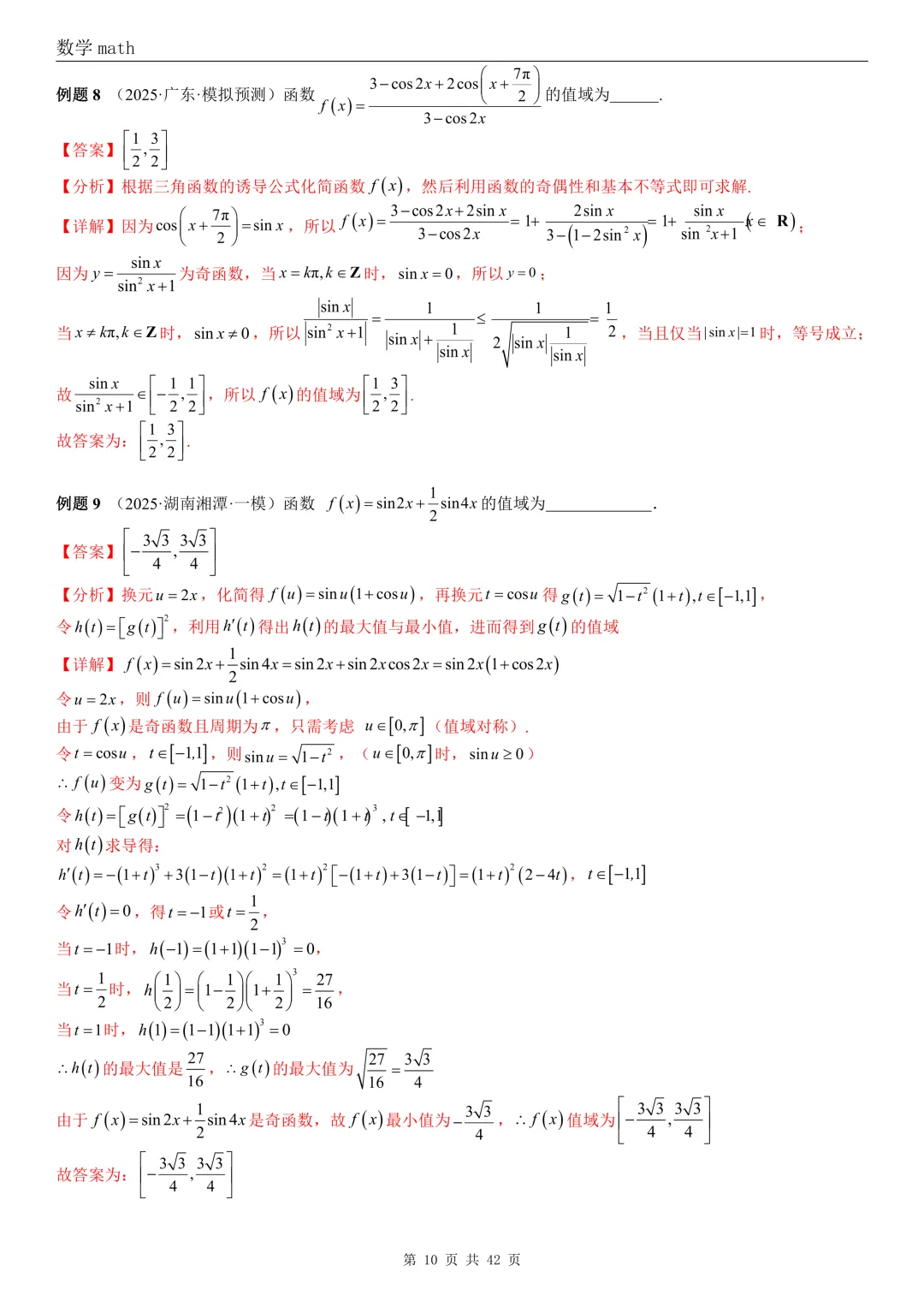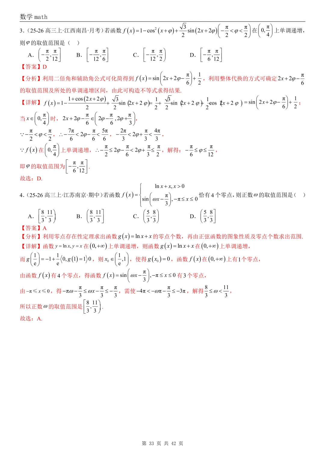 2026二轮复习4:答题模板09 三角函数选填(三角函数图象与性质、异名三角函数伸缩平移、最值与值域、三角函数ω及参数)(解析版)