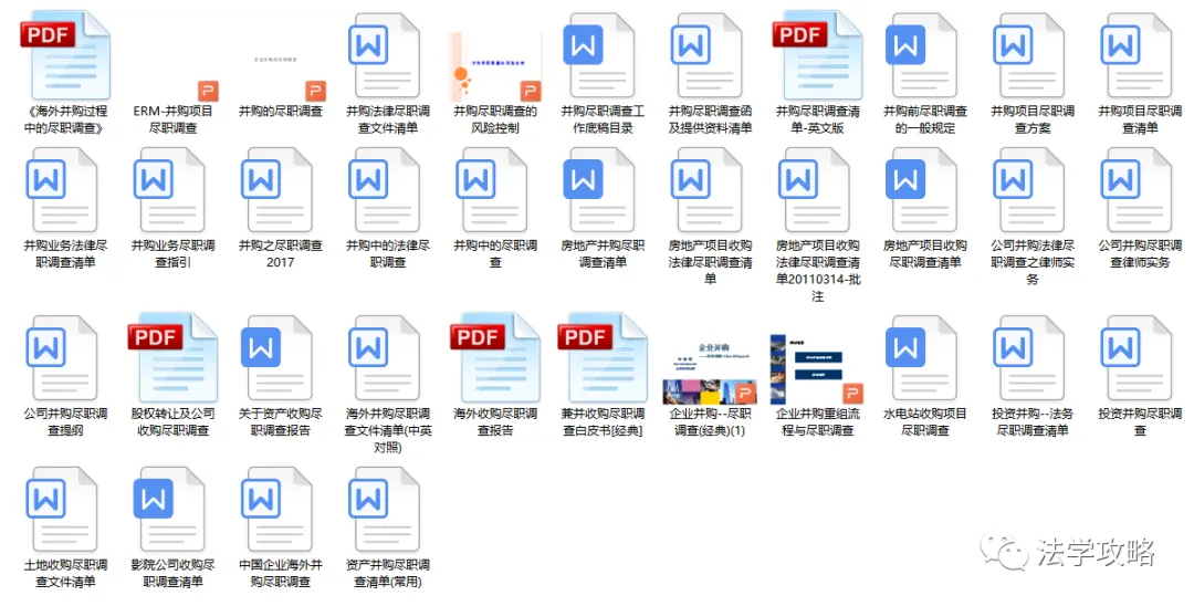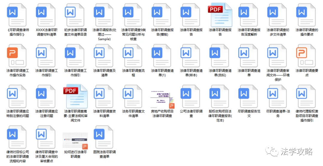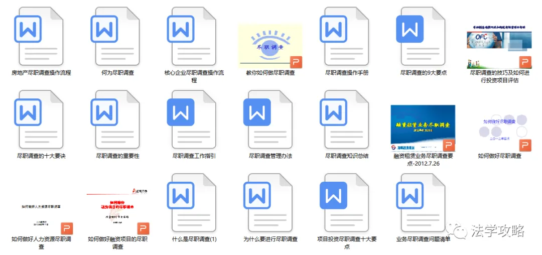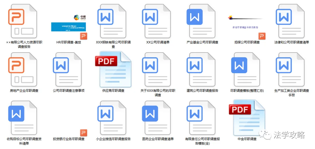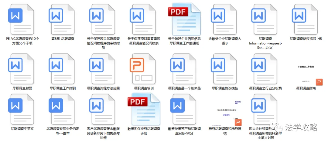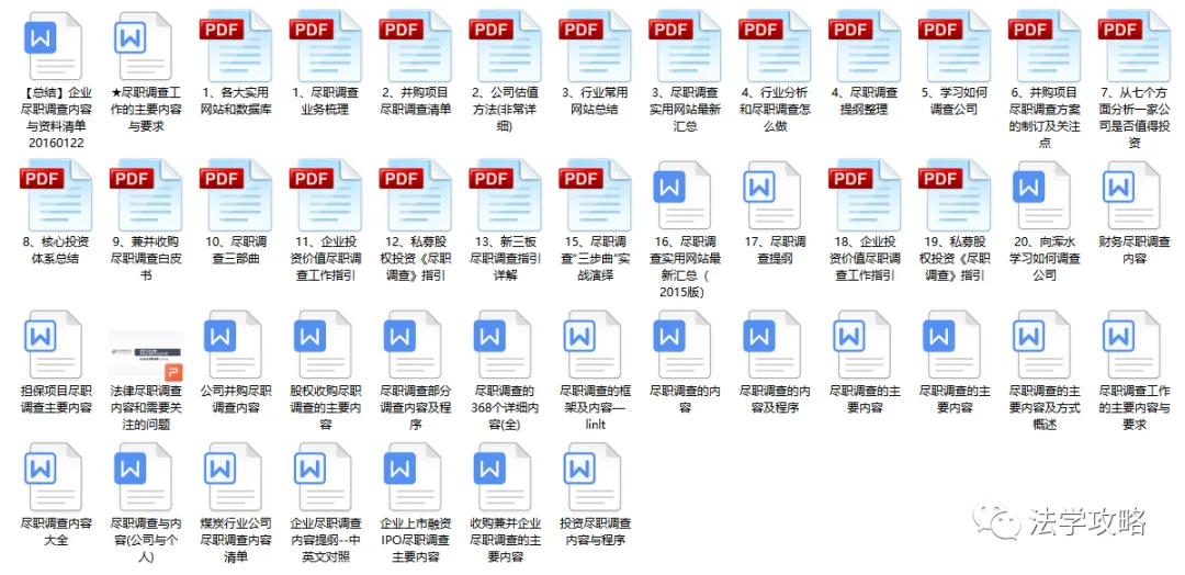 关注“法学攻略”公众号, 回复关键字“尽职调查”即可查看获取方式
