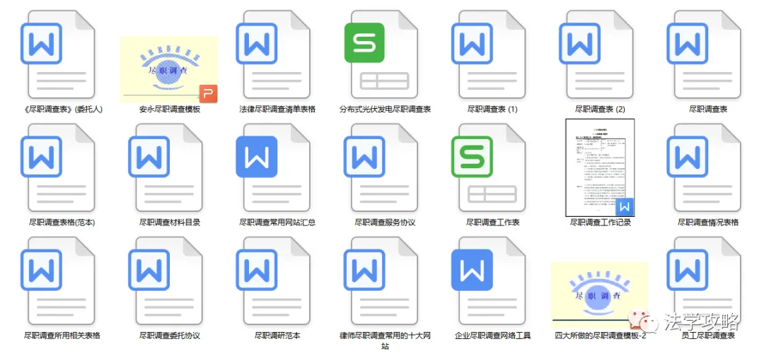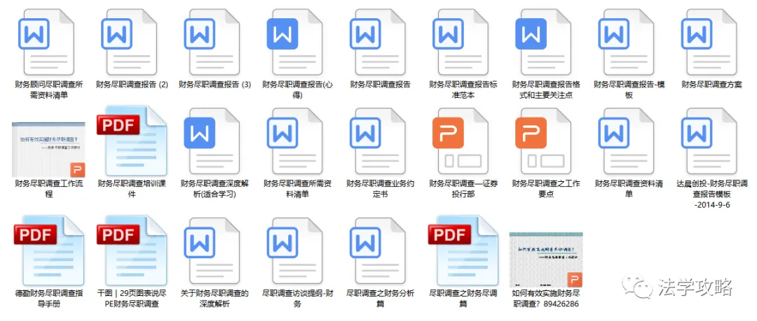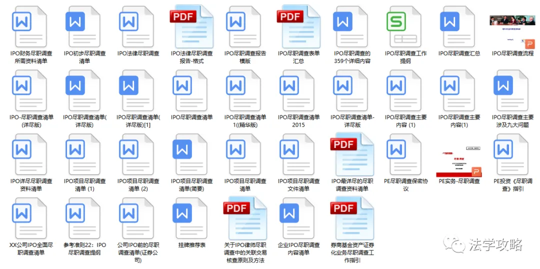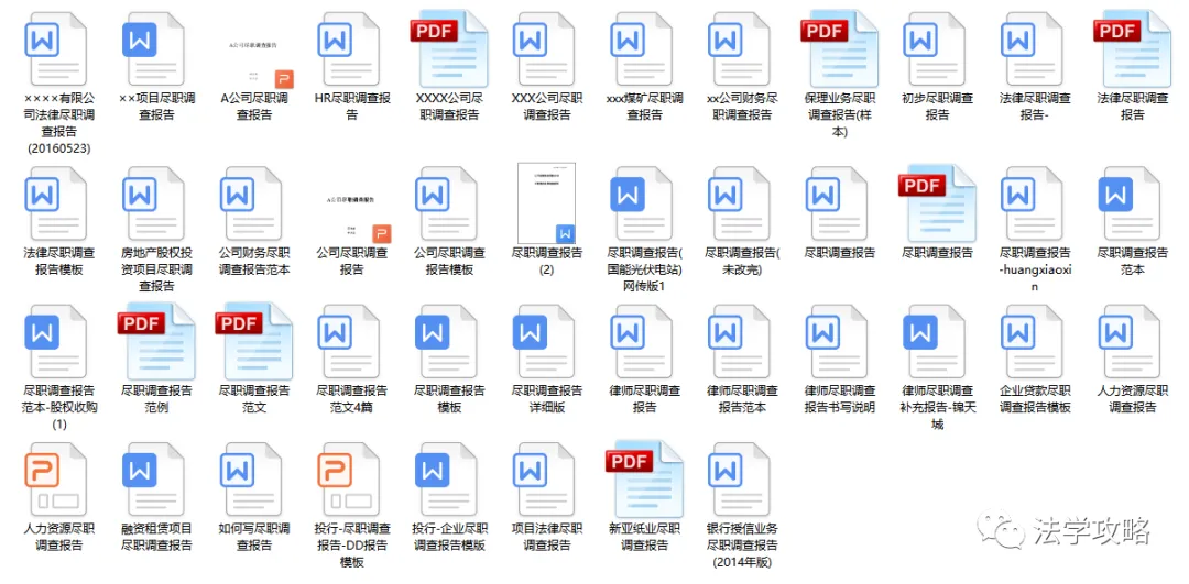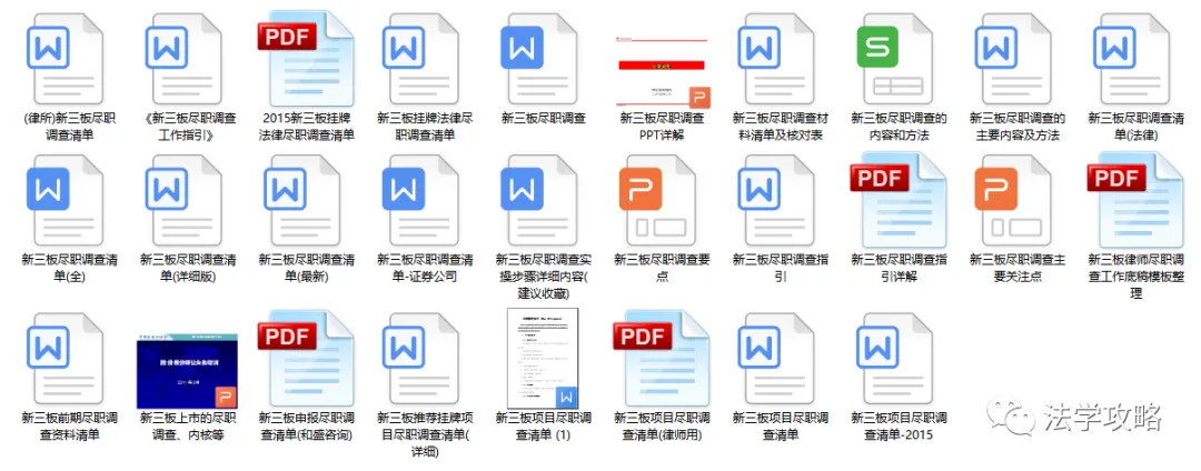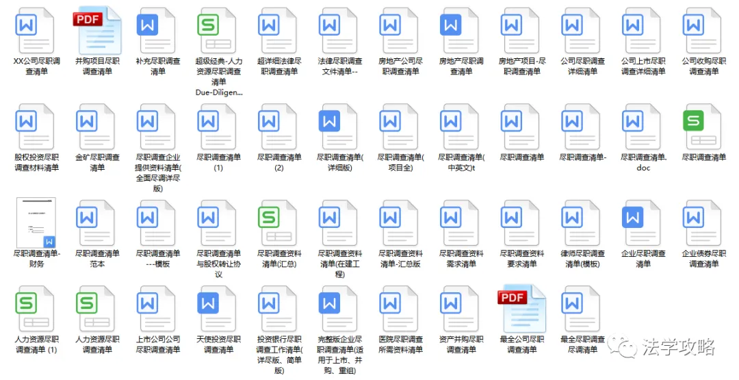 关注“法学攻略”公众号, 回复关键字“尽职调查”即可查看获取方式