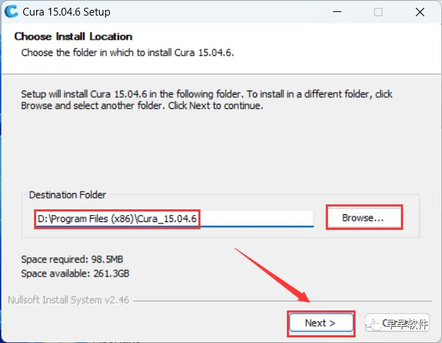4、软件默认安装在C盘,可自定义更改软件安装位置,这里小编选择安装在D盘;点击【Next】