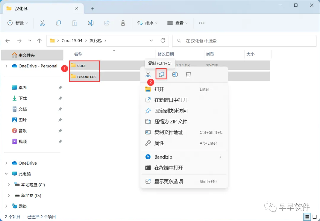 12、回到Cura 15.04文件夹,找到【汉化包】文件夹,右键【打开】它