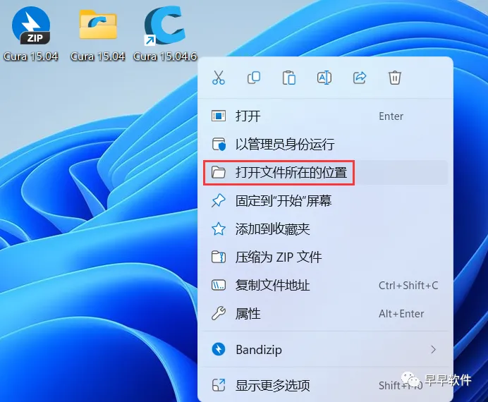 15、右键桌面上的【Cura 15.04.6软件图标】,点击【打开文件所在的位置】