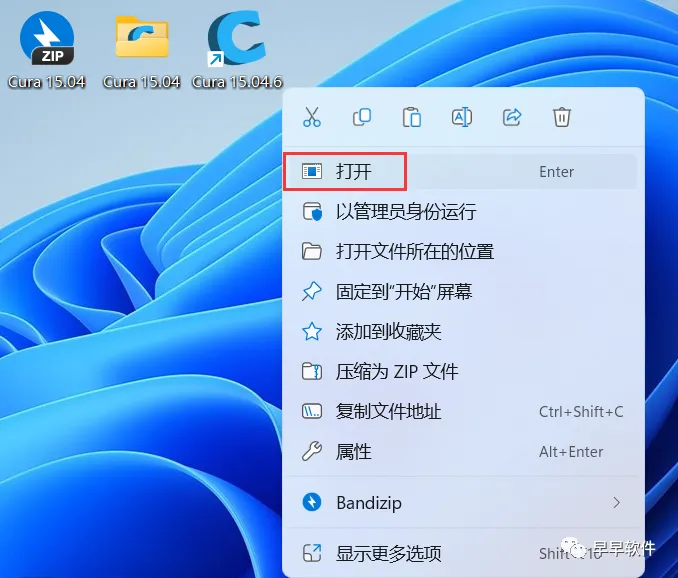 19、回到桌面,右键桌面上的【Cura 15.04.6软件图标】,点击【打开】