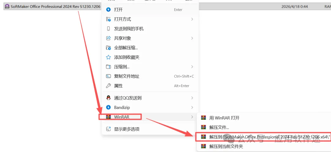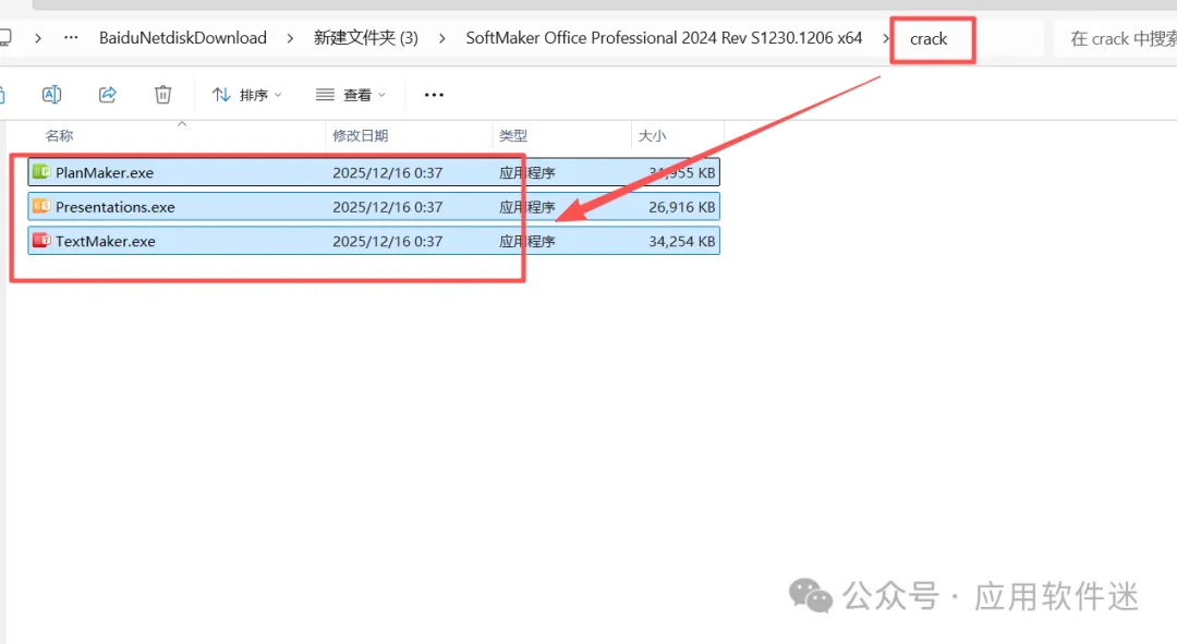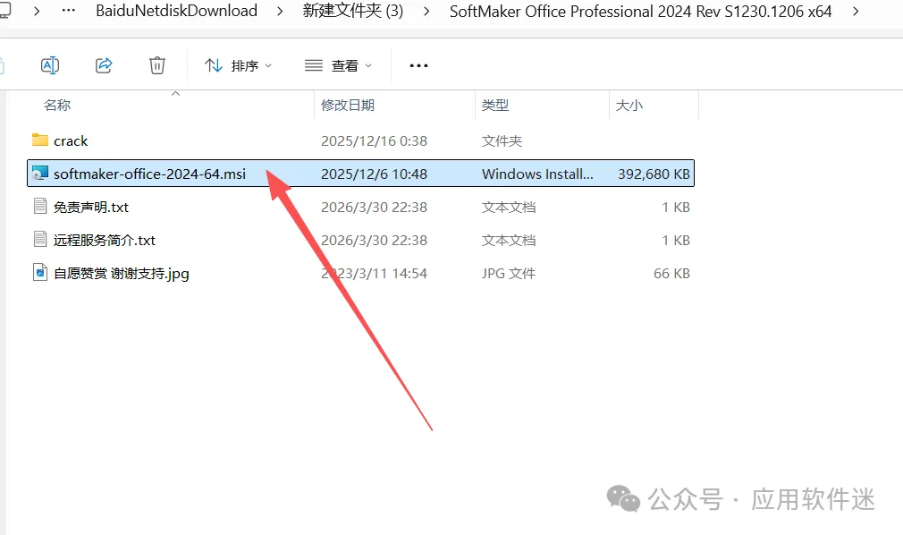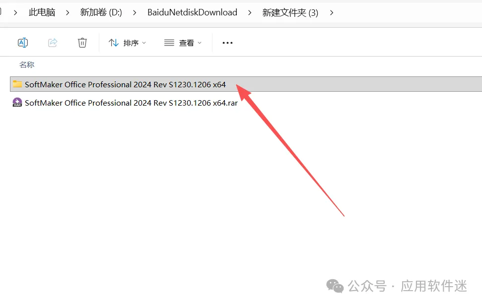 2、进入解压后的【SoftMaker Office Professional 2024 Rev S1230.1206 x64】文件夹内,双击【softmaker-office-2024-64】。