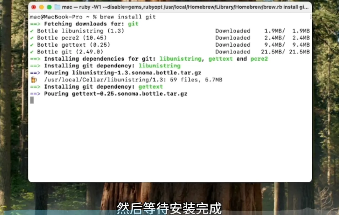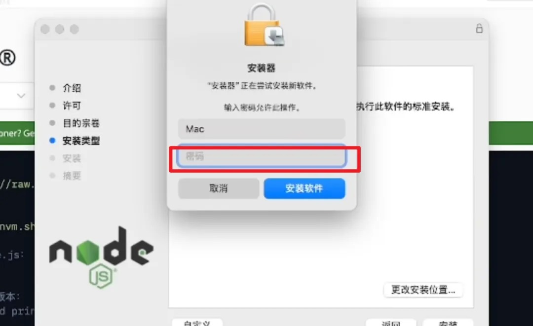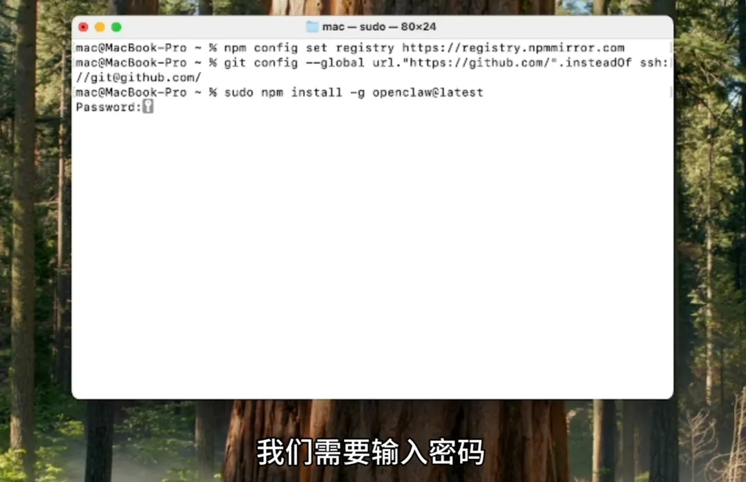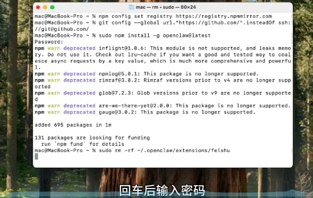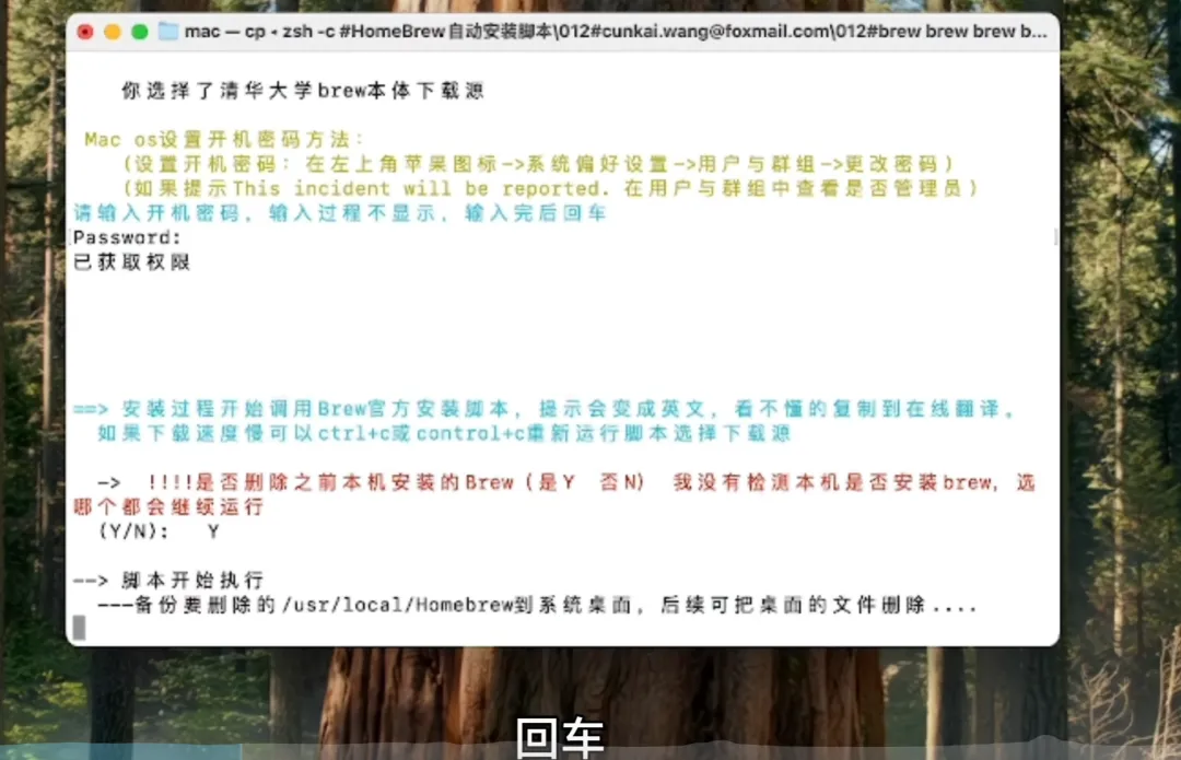 输入电脑密码并回车,等待安装完成。