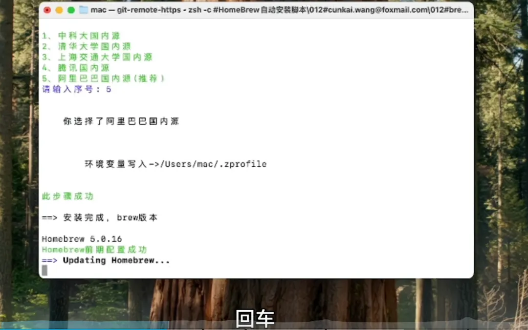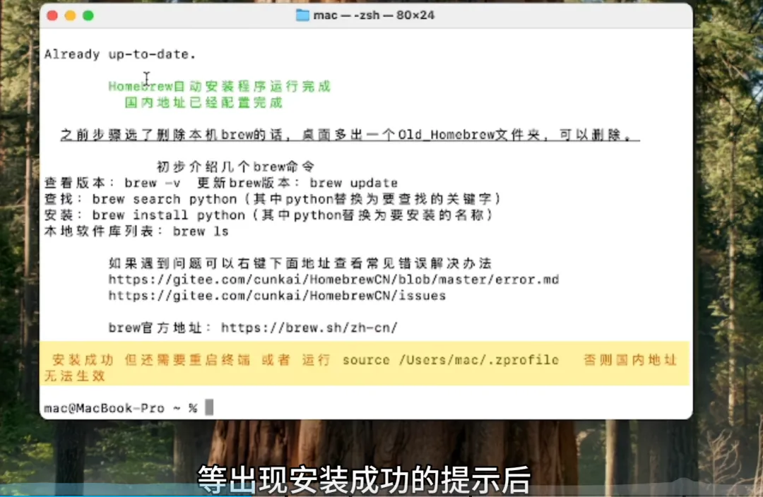 Homebrew 安装完成。