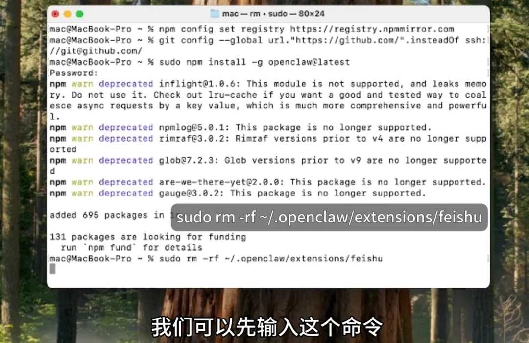 sudo rm -rf ~/.openclaw/extensions/feishu