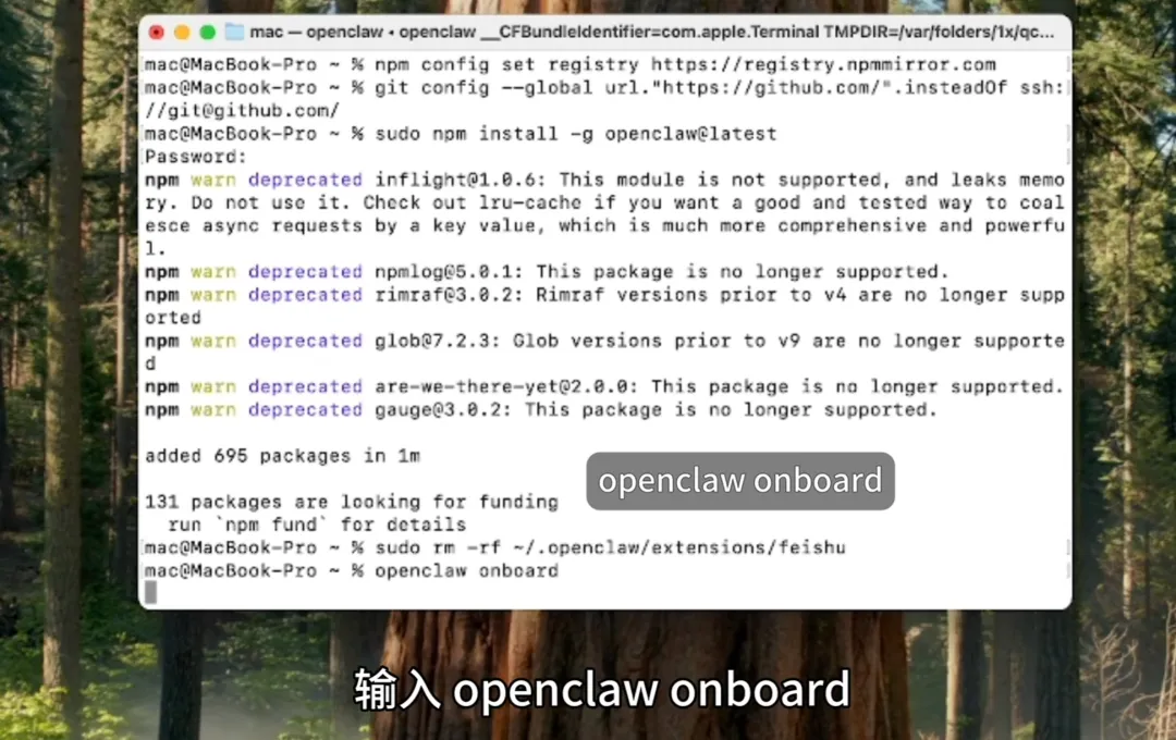 在终端输入 openclaw onboard